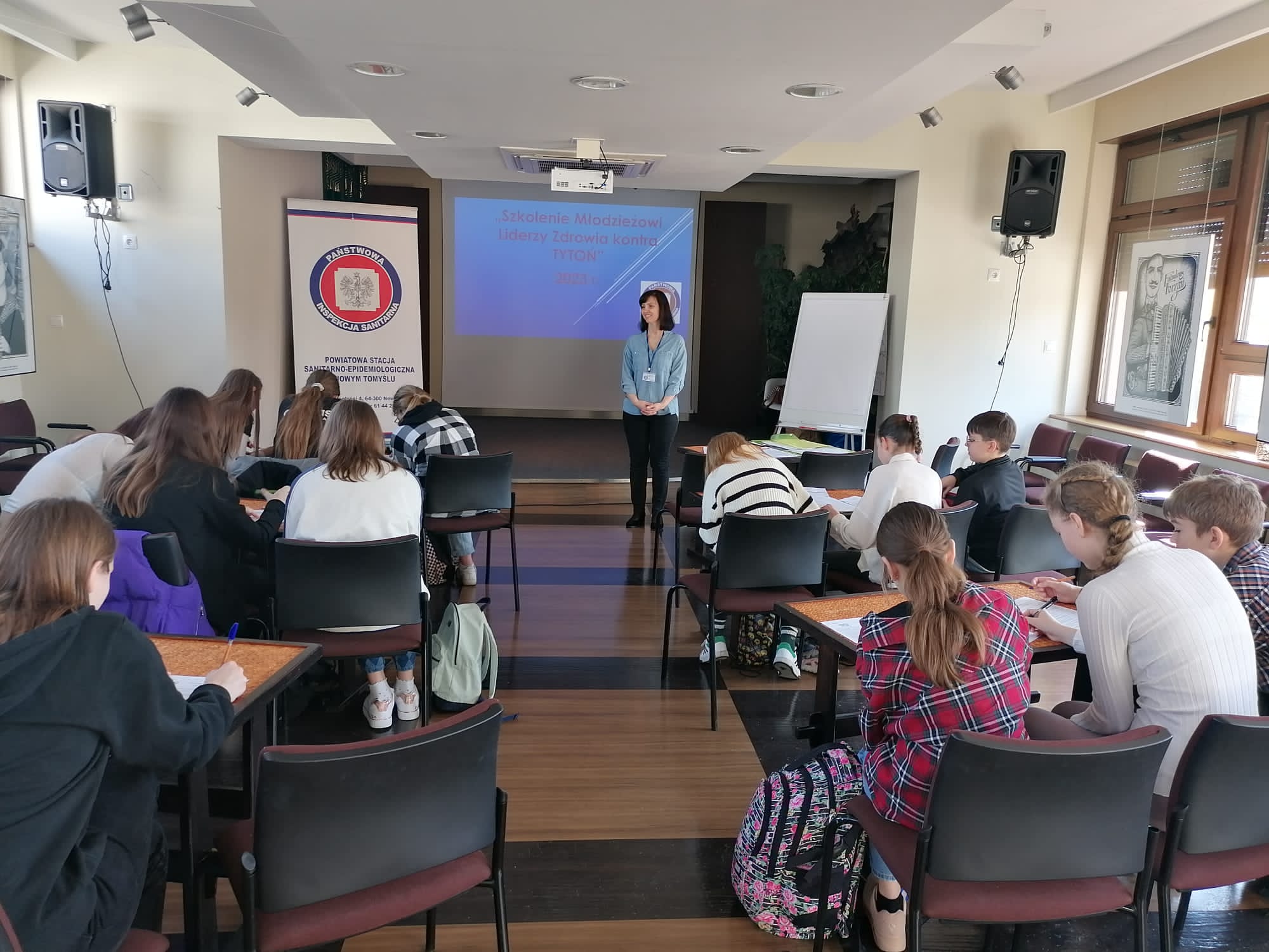 W dniu 21 kwietnia 2023 r. w Miejskiej i Powiatowej Bibliotece Publicznej w Nowym Tomyślu pracownik Stanowiska Pracy ds. Oświaty Zdrowotnej i Promocji Zdrowia Powiatowej Stacji Sanitarno- Epidemiologicznej w Nowym Tomyślu przeprowadził szkolenie „Młodzieżowi Liderzy Zdrowia - kontra tytoń”.
