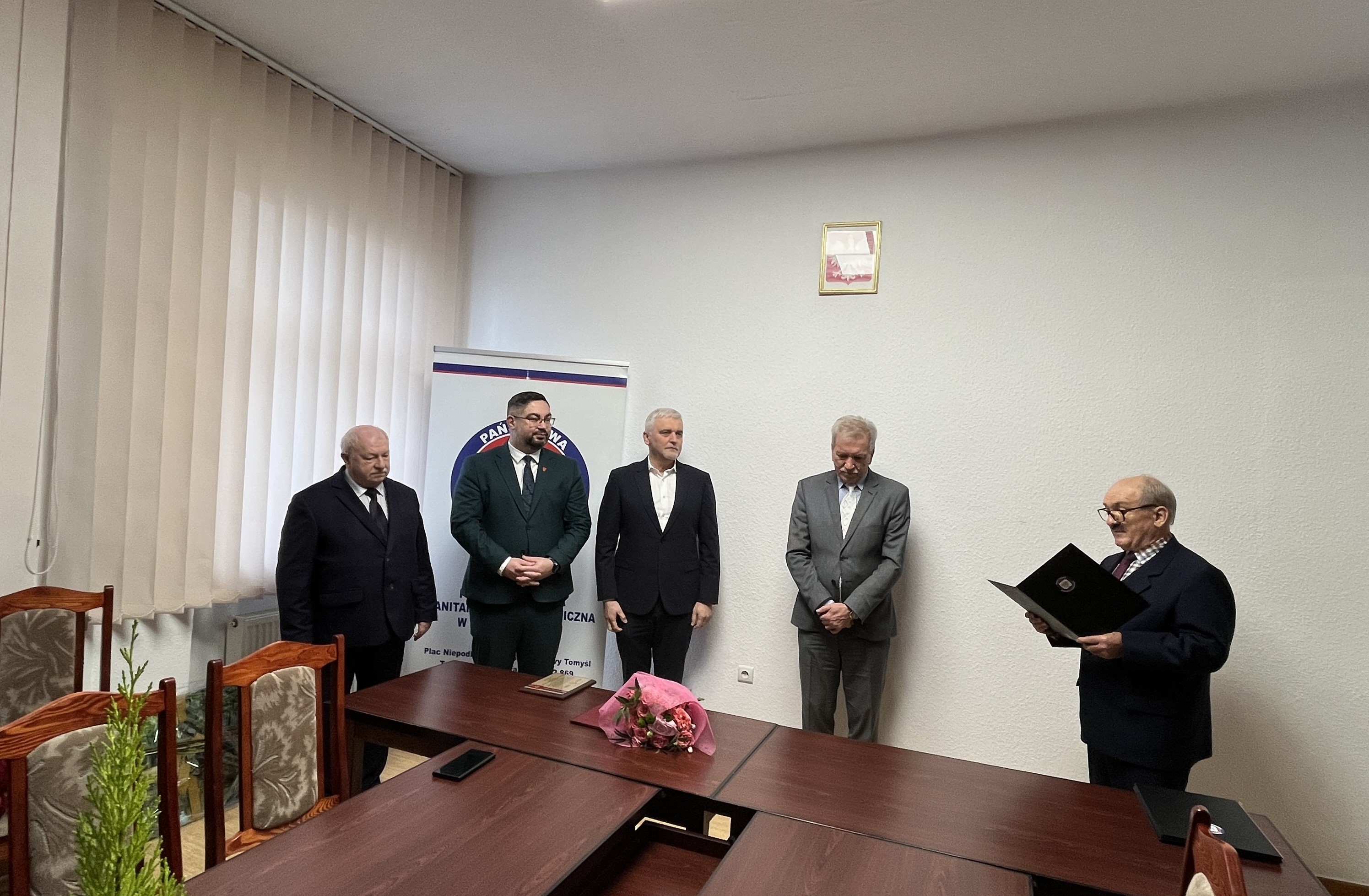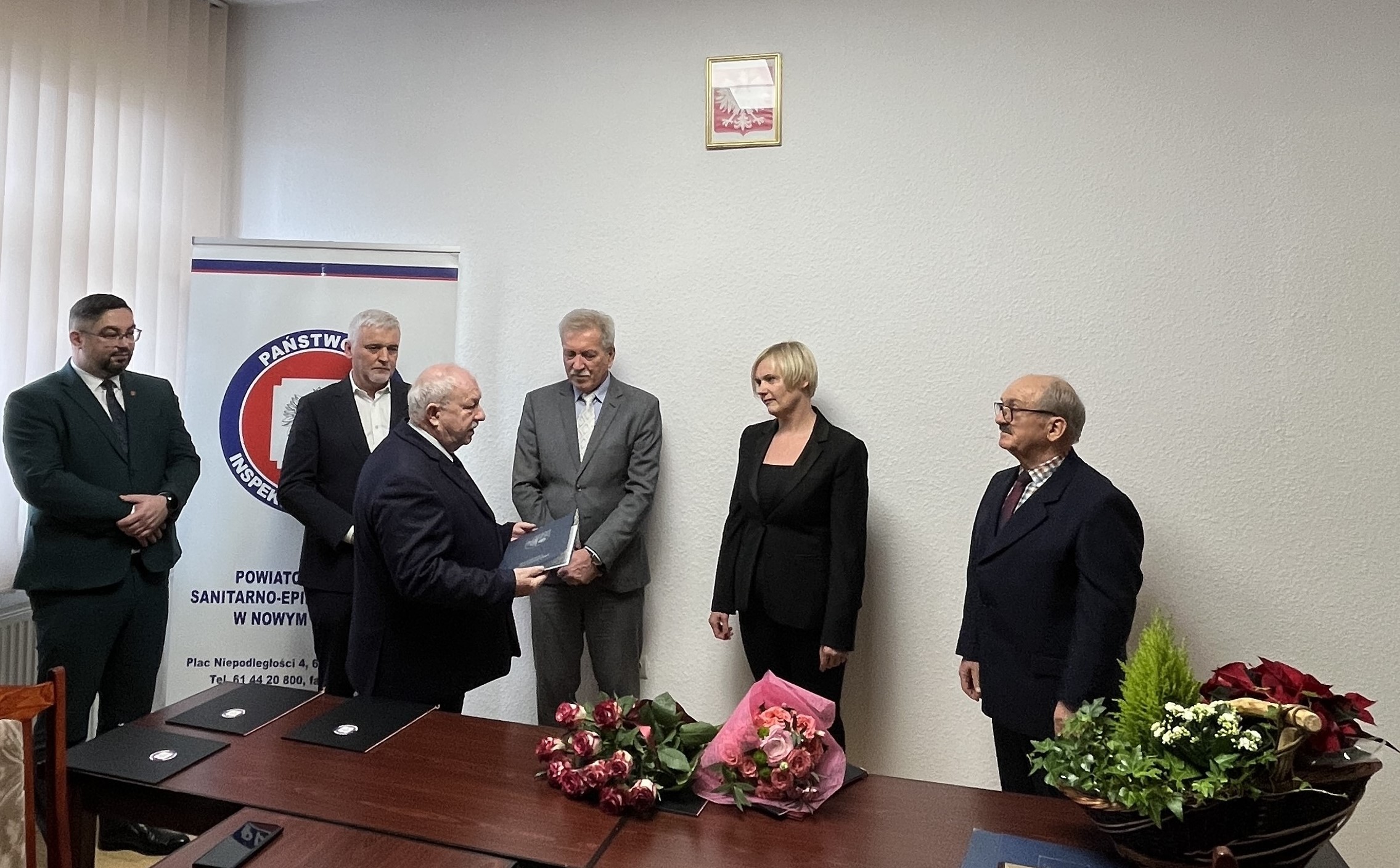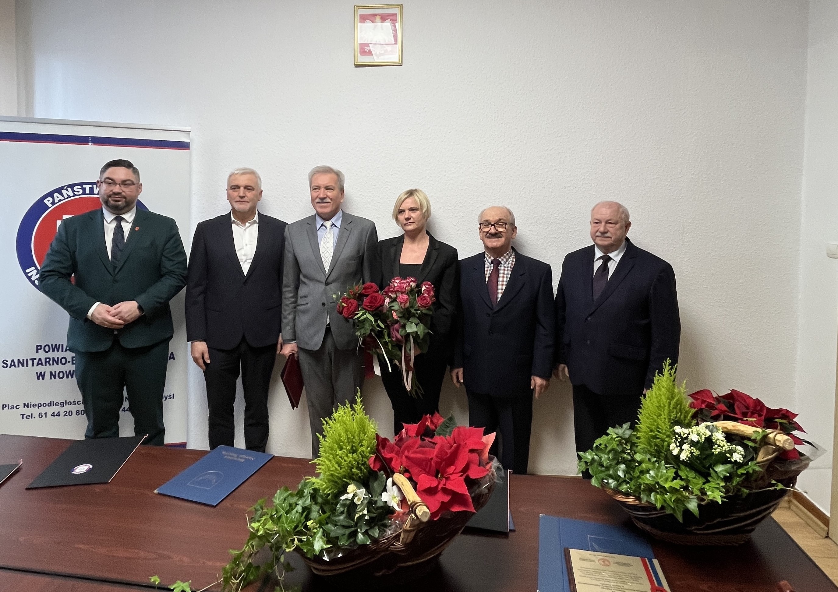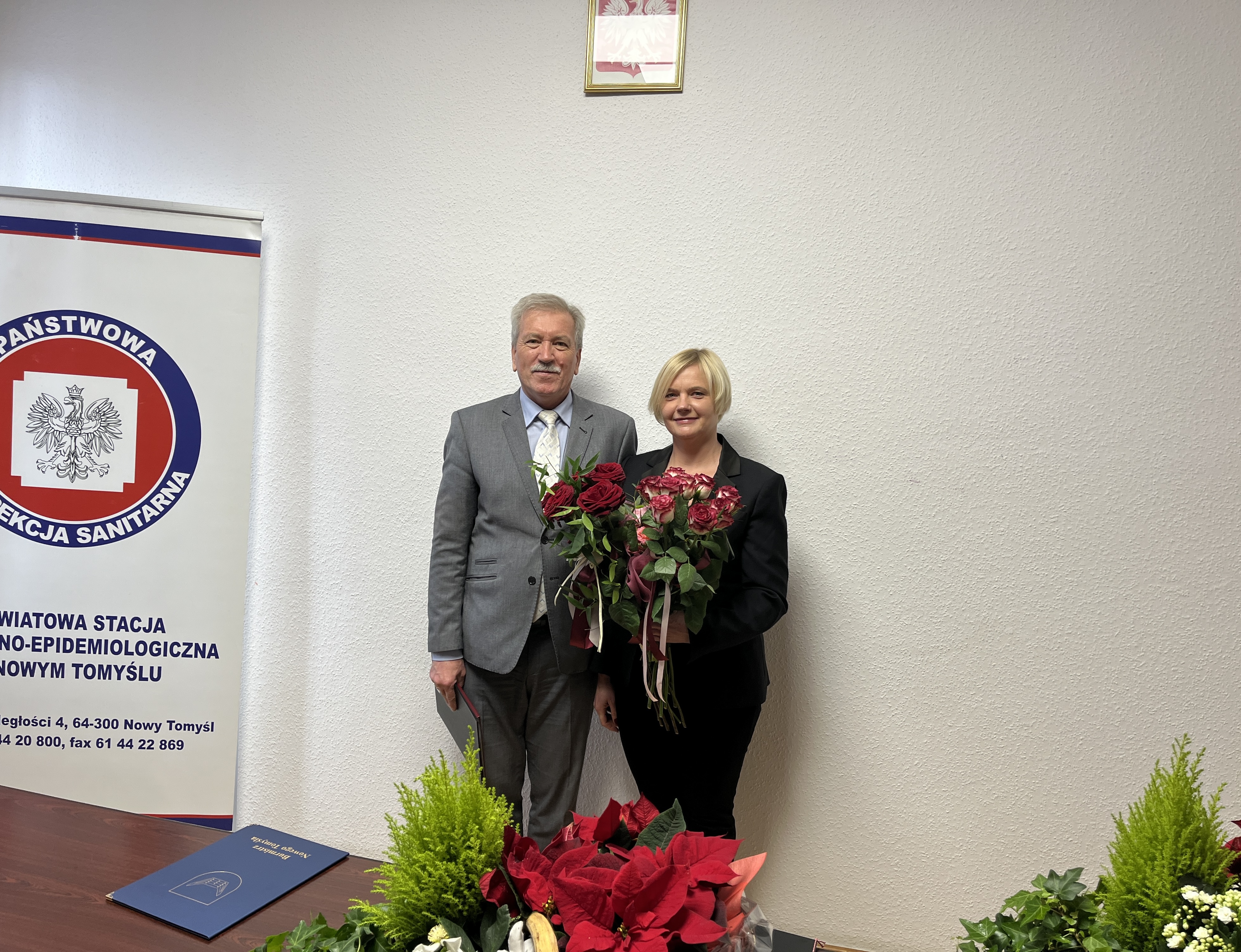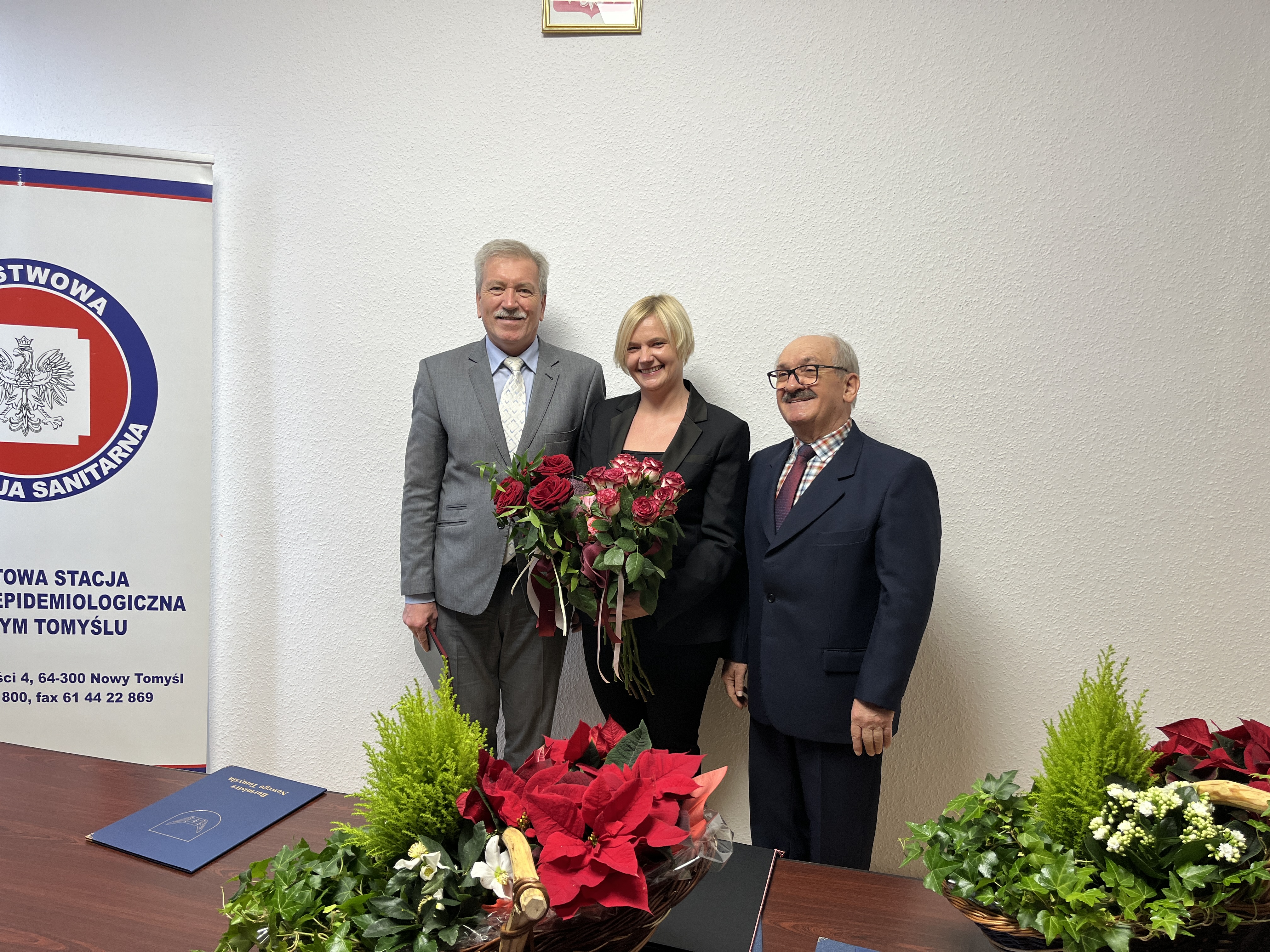 Za wieloletnią współpracę, pełne zaangażowanie i profesjonalizm w pracy oraz działalność na rzecz bezpieczeństwa zdrowotnego mieszkańców Powiatu Nowotomyskiego podziękowali Panu Dyrektorowi - Wielkopolski Państwowy Wojewódzki Inspektor Sanitarny Pan Paweł Gilewski, przedstawiciele lokalnych władz samorządowych Pan Andrzej Wilkoński Starosta Nowotomyski, Pan Marcin Brambor Burmistrz Nowego Tomyśla oraz Pan Tomasz Kurasiński Burmistrz Zbąszynia.