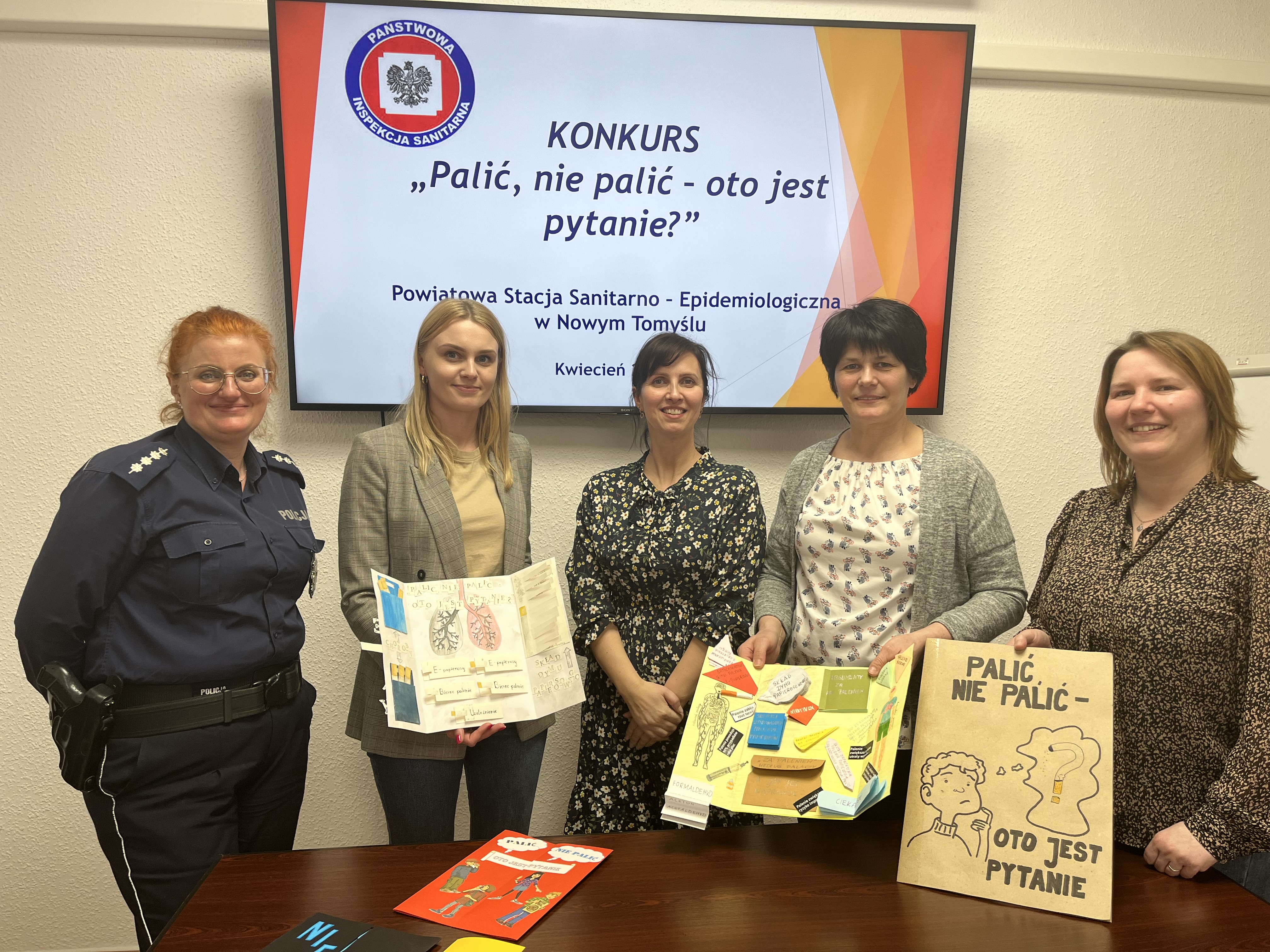 Dnia 14 kwietnia br. w siedzibie PSSE w Nowym Tomyślu odbyło się uroczyste rozstrzygnięcie konkursu ph.: "Palić, nie palić - oto jest pytanie?", który był skierowany do uczniów klas V szkół podstawowych. Zadanie konkursowe polegało na przygotowaniu lapbooka promującego zdrowy styl życia wolny od palenia tytoniu i inhalowania e-papierosów.