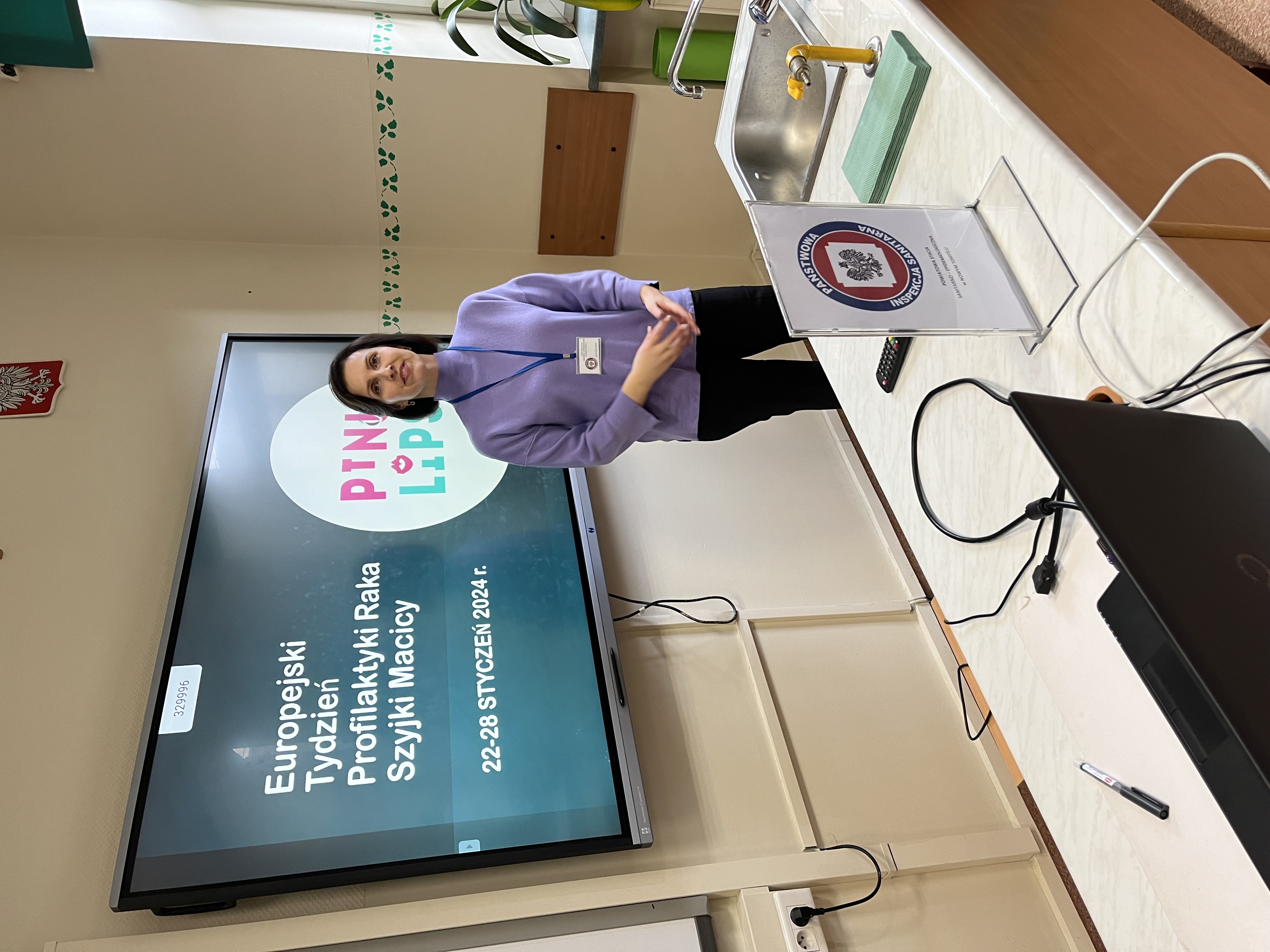 W ramach „Europejskiego Tygodnia Profilaktyki Raka Szyjki Macicy”, który trwał od 22 do 28 stycznia br. pracownik Sekcji Higieny Dzieci, Młodzieży i Promocji Zdrowia PSSE w Nowym Tomyślu przeprowadził spotkania edukacyjne z młodzieżą szkół ponadpodstawowych powiatu nowotomyskiego - gościliśmy w ZS nr 1, ZS nr 2 w Nowym Tomyślu, ZS w Zbąszyniu oraz w OHP w Chraplewie. Uczniowie m.in. dowiedzieli się, że: