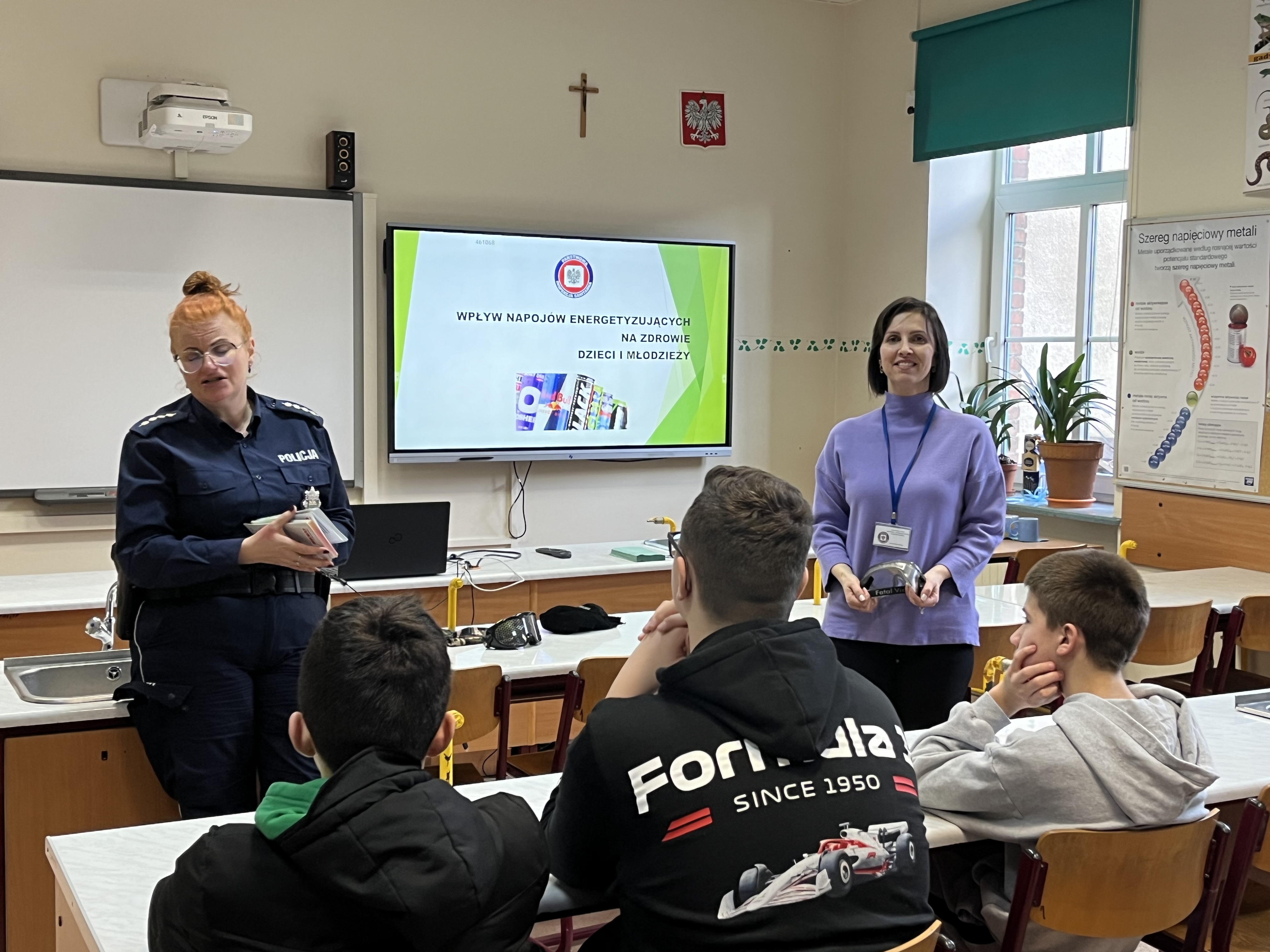 Dodatkowo przy współpracy z KPP w Nowym Tomyślu odbyły się również pogadanki z uczniami na temat zagrożeń i konsekwencji prawnych związanych z zażywaniem środków psychoaktywnych.