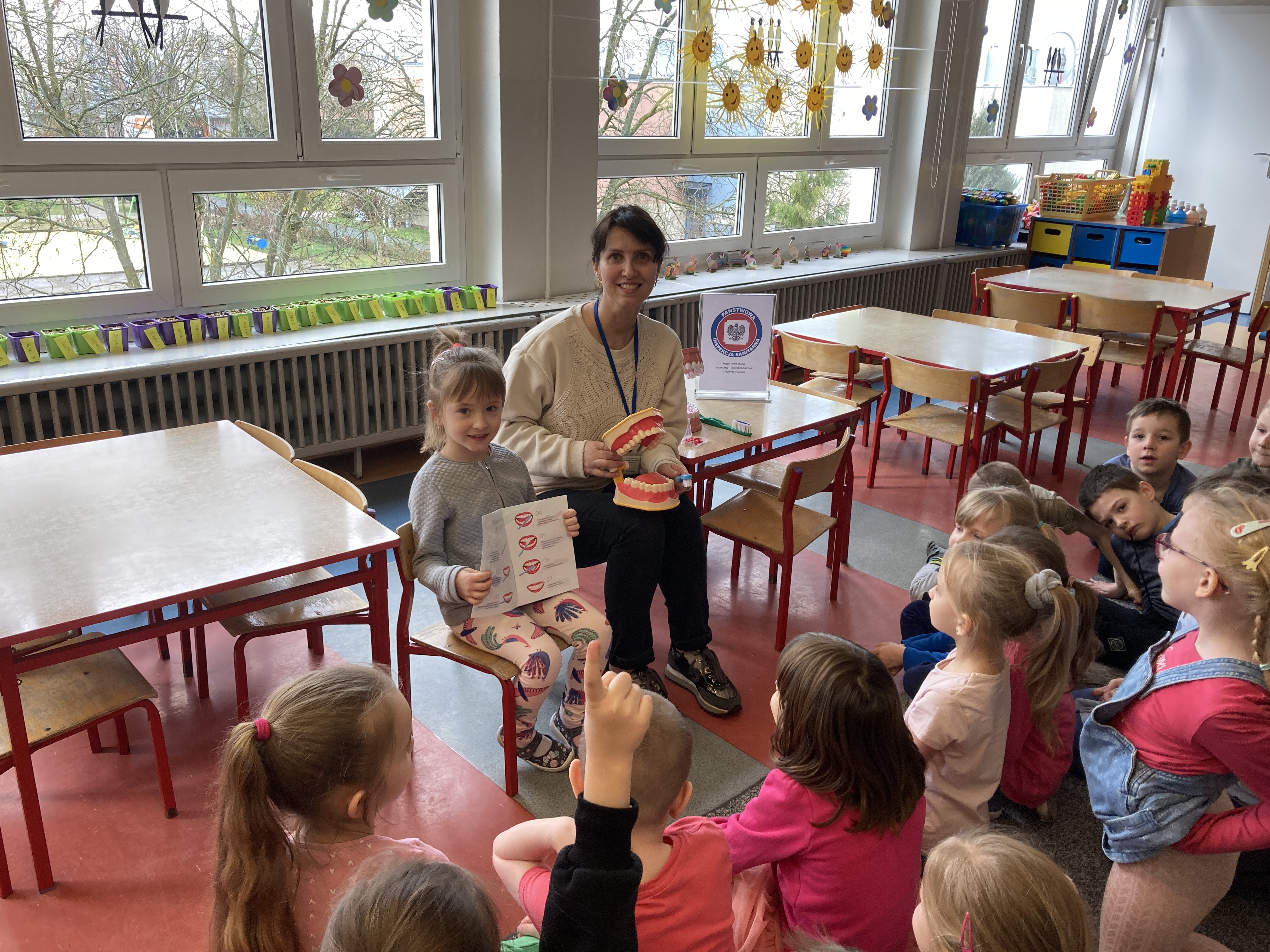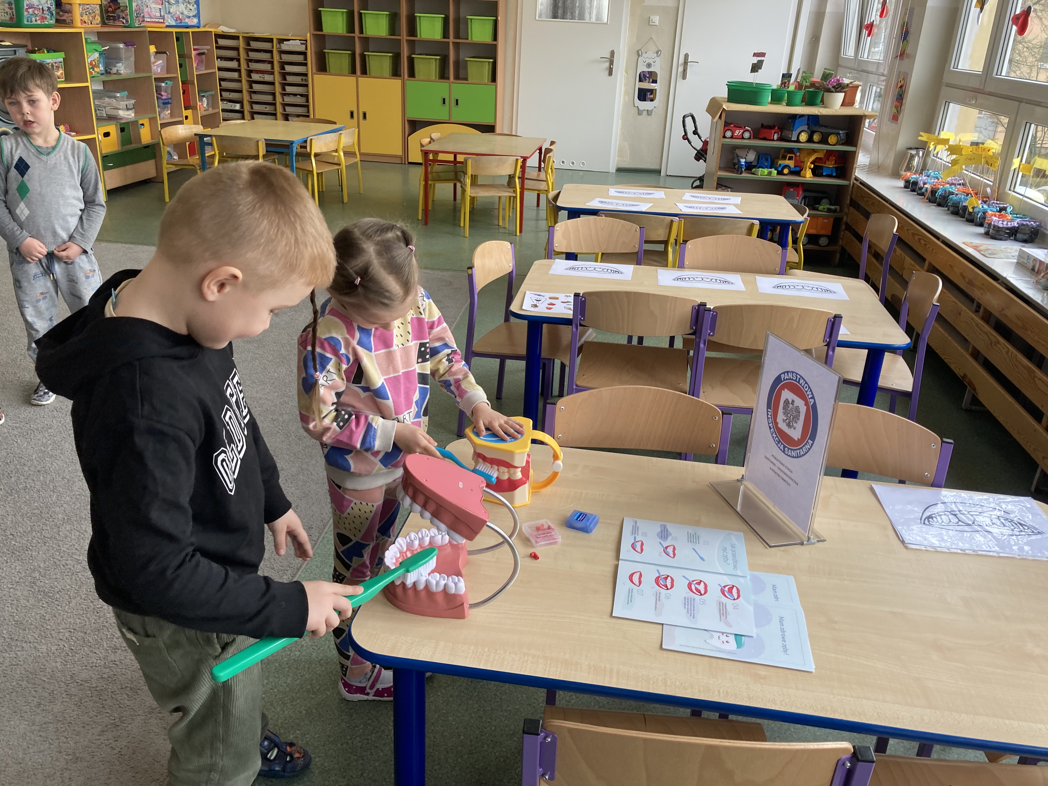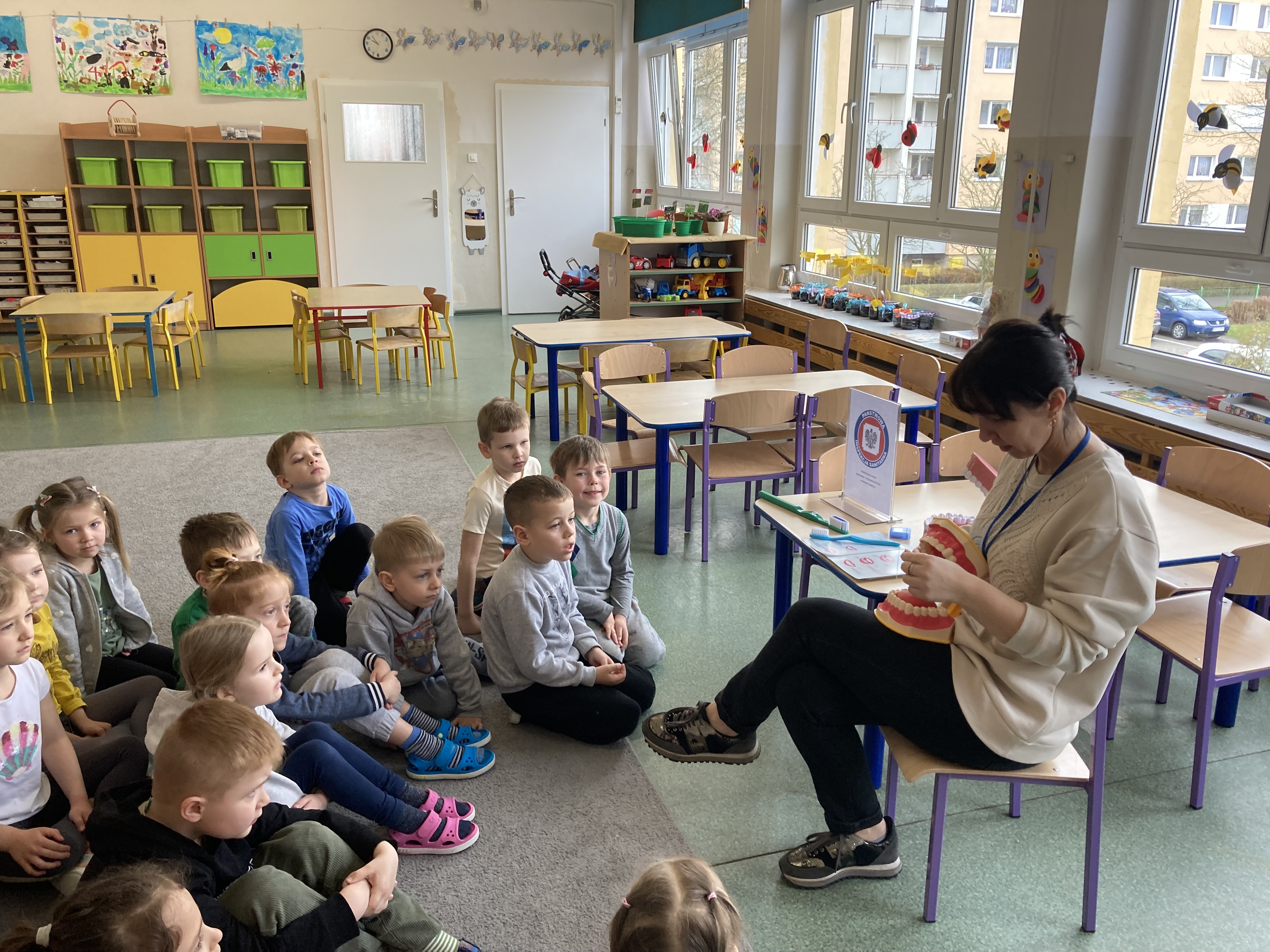 Dnia 30.03.2023 r. w przedszkolu nr 2 w Nowym Tomyślu odbyło się spotkanie profilaktyczne, w którym uczestniczyły dzieci z grupy: "Muchomory", "Misie" oraz "Pszczółki". Wśród dzieci pracownik Oświaty Zdrowotnej i Promocji Zdrowia PSSE w Nowym Tomyślu przeprowadził pogadankę na temat prawidłowej higieny jamy ustnej, następnie dzieci przy pomocy modelu szczęki zapoznały się z prawidłowymi technikami szczotkowania zębów. Poruszony został także temat zdrowego odżywiania.