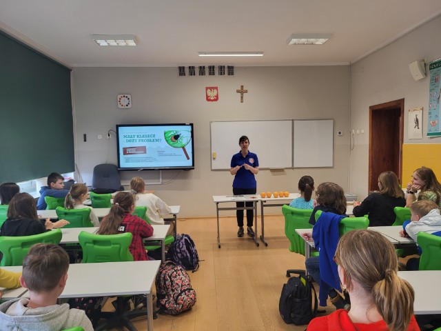W dniu 12.04.2023 r. w SP w Opalenicy odbyło się spotkanie profilaktyczne z uczniami klasy IV c oraz II c w ramach „Światowego Dnia Zdrowia” i „Światowego Dnia Wody”. Wśród dzieci klasy IV c pracownik Sekcji Higieny Komunalnej Powiatowej Stacji Sanitarno – Epidemiologicznej w Nowym Tomyślu przeprowadził pogadankę pod hasłem „Pij Wodę!”. Uczniowie poznali wpływ picia wody na zdrowie człowieka, sposób pozyskiwania i uzdatniania wody oraz poznały procedurę poboru próbek wody do badań laboratoryjnych przez Powiatową Stację Sanitarno – Epidemiologiczną w Nowym Tomyślu. W drugiej części spotkania pracownik Stanowiska Pracy ds. Oświaty Zdrowotnej i Promocji Zdrowia przeprowadził pogadankę na temat profilaktyki chorób odkleszczowych pod hasłem „Mały kleszcz – duży problem?” i profilaktyki raka skóry pod hasłem: „Znamię – znam je?”.