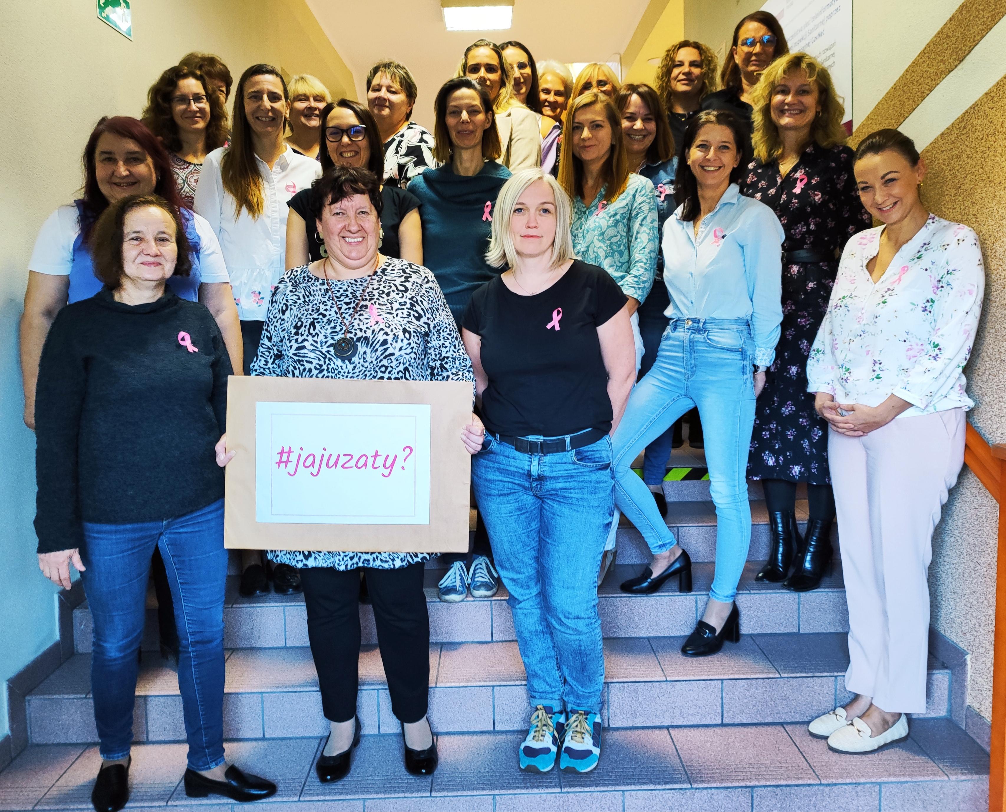 Z tej okazji cała damska część załogi Powiatowej Stacji Sanitarno - Epidemiologicznej w Nysie postanowiła przyłączyć się do kampanii Wojewódzkiej Stacji Sanitarno - Epidemiologicznej w Krakowie pn. „Ja już, a Ty?” (#jajuzaty?), która ma na celu zmotywowanie kobiet do regularnego badania piersi. Akcja polega na zbadaniu swoich piersi, a następnie wrzuceniu do mediów społecznościowych swojego zdjęcia z hashtagiem #jajuzaty?. Wszystkie Panie z PSSE Nysa wzorowo wykonały zadanie, a na dowód przyłączenia do kampanii zapozowały do wspólnego zdjęcia, które zamieszczono poniżej.