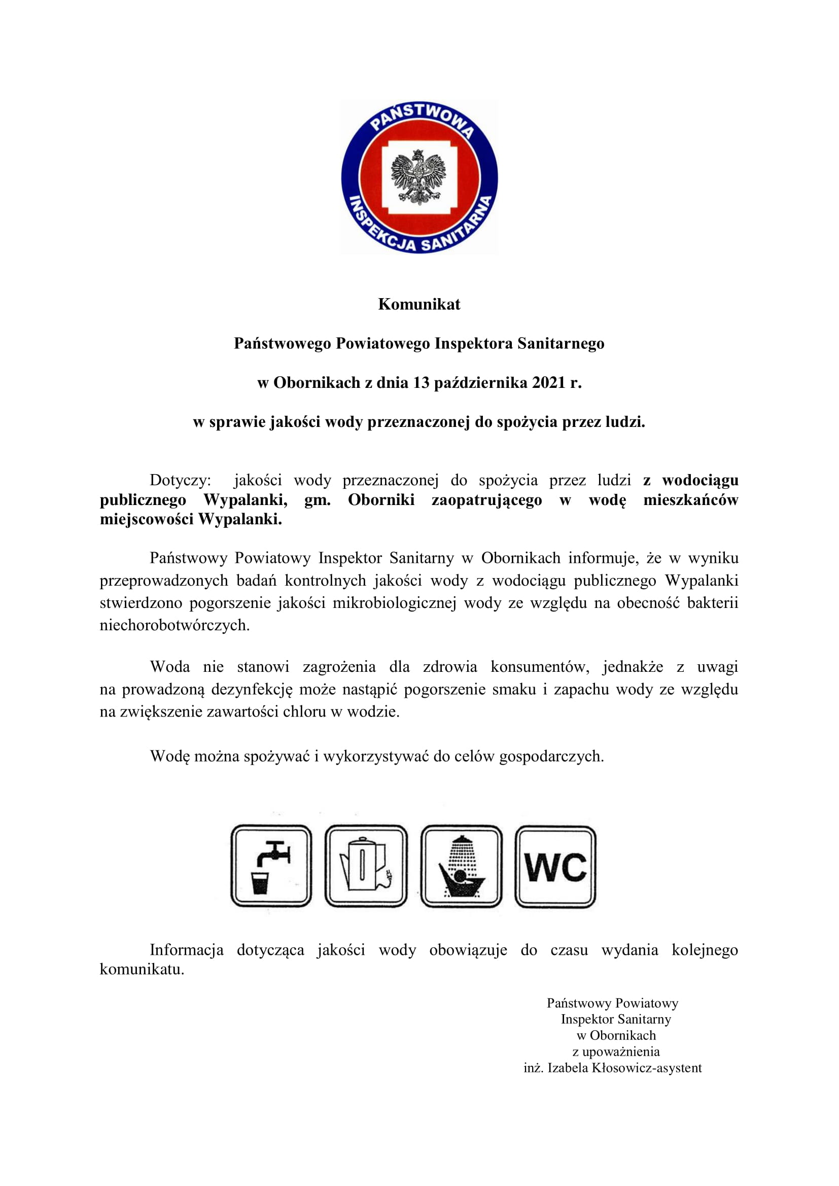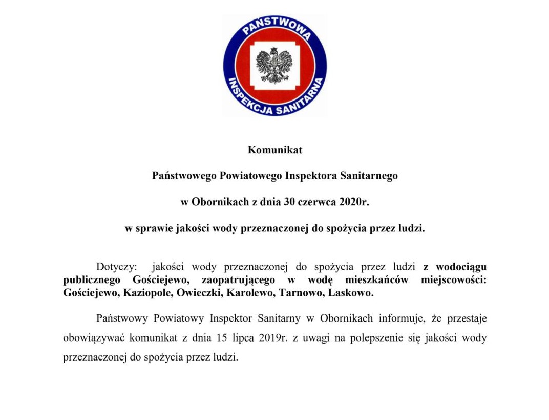 Komunikaty dotyczące zmiany jakości wody przeznaczonej do spożycia przez ludzi Rok 2021 Rok 2020 Rok 2019