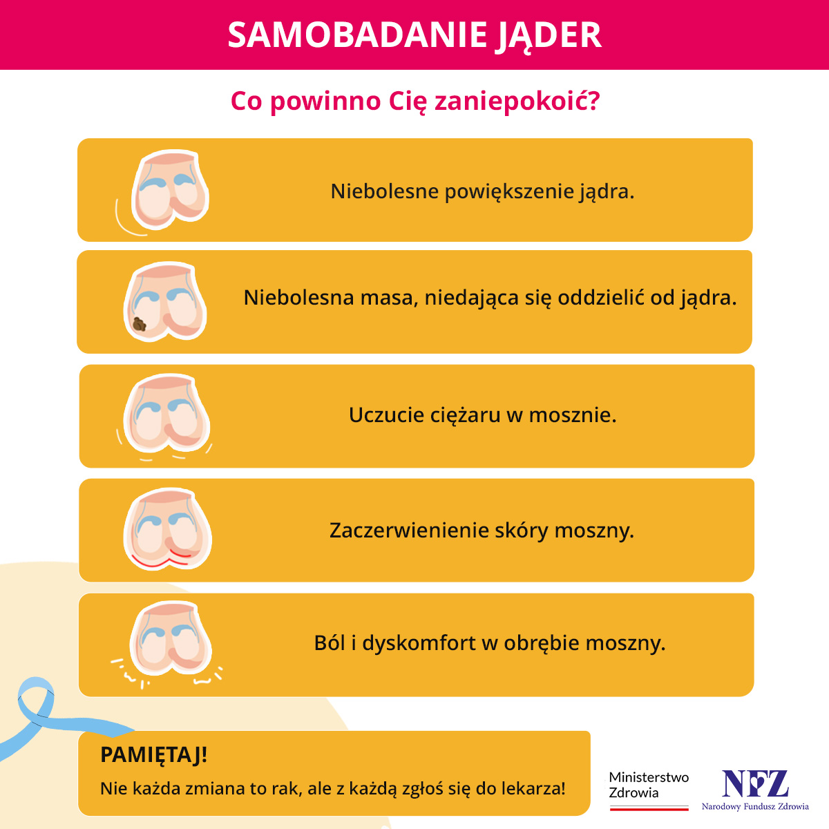 - od 15. roku życia wykonuj samobadanie jąder raz w miesiącu,