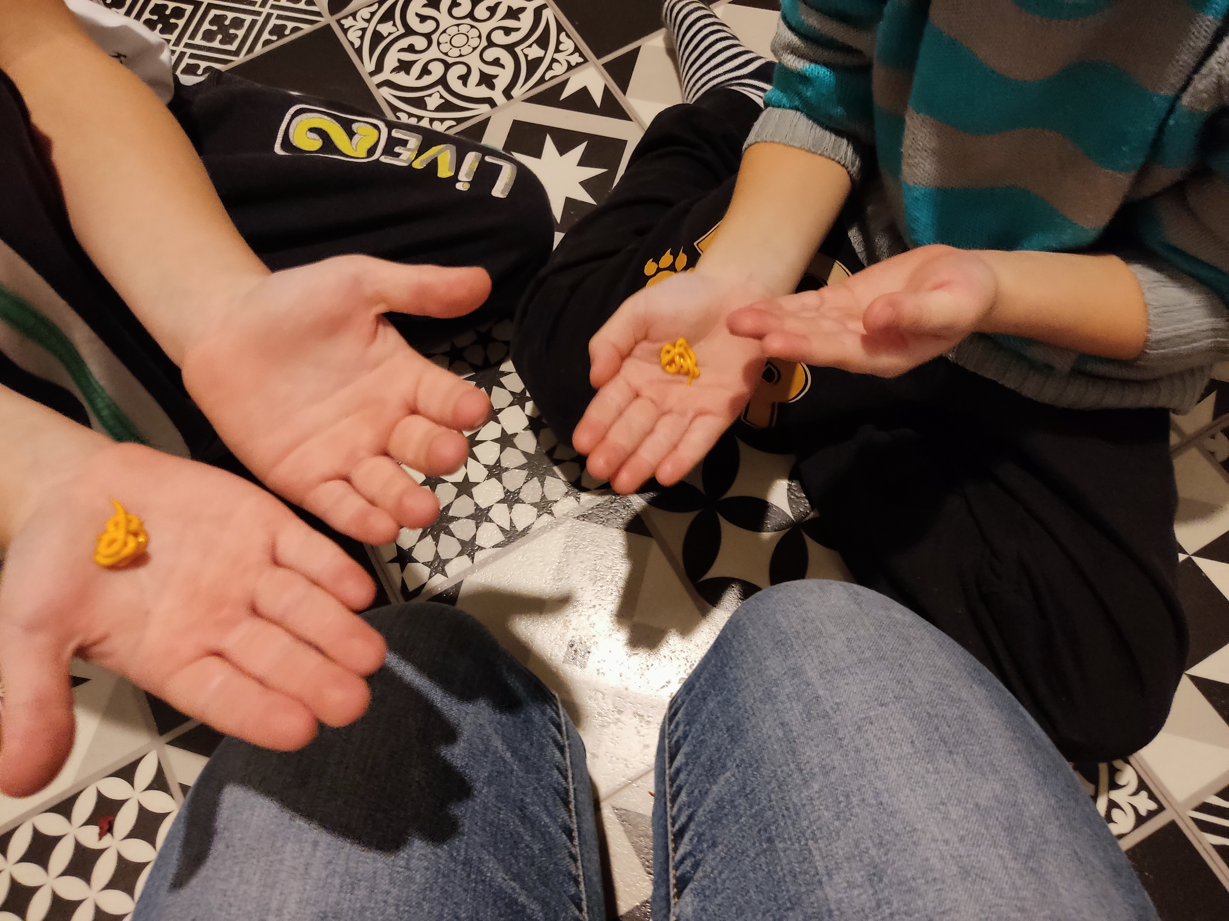 Wiemy, że nauczanie przez doświadczanie jest bardzo efektywne, dlatego przeprowadziliśmy eksperyment. Żeby zwrócić uwagę dzieci na to, że dokładne umycie całych powierzchni dłoni jest ważne, zastosowaliśmy żółte mydełko od Medilab. Dzięki niemu sprawdziliśmy, czy rączki zostały dobrze umyte. Miejsca niepokryte żółtym kolorem to miejsca pominięte, bądź niedomyte.