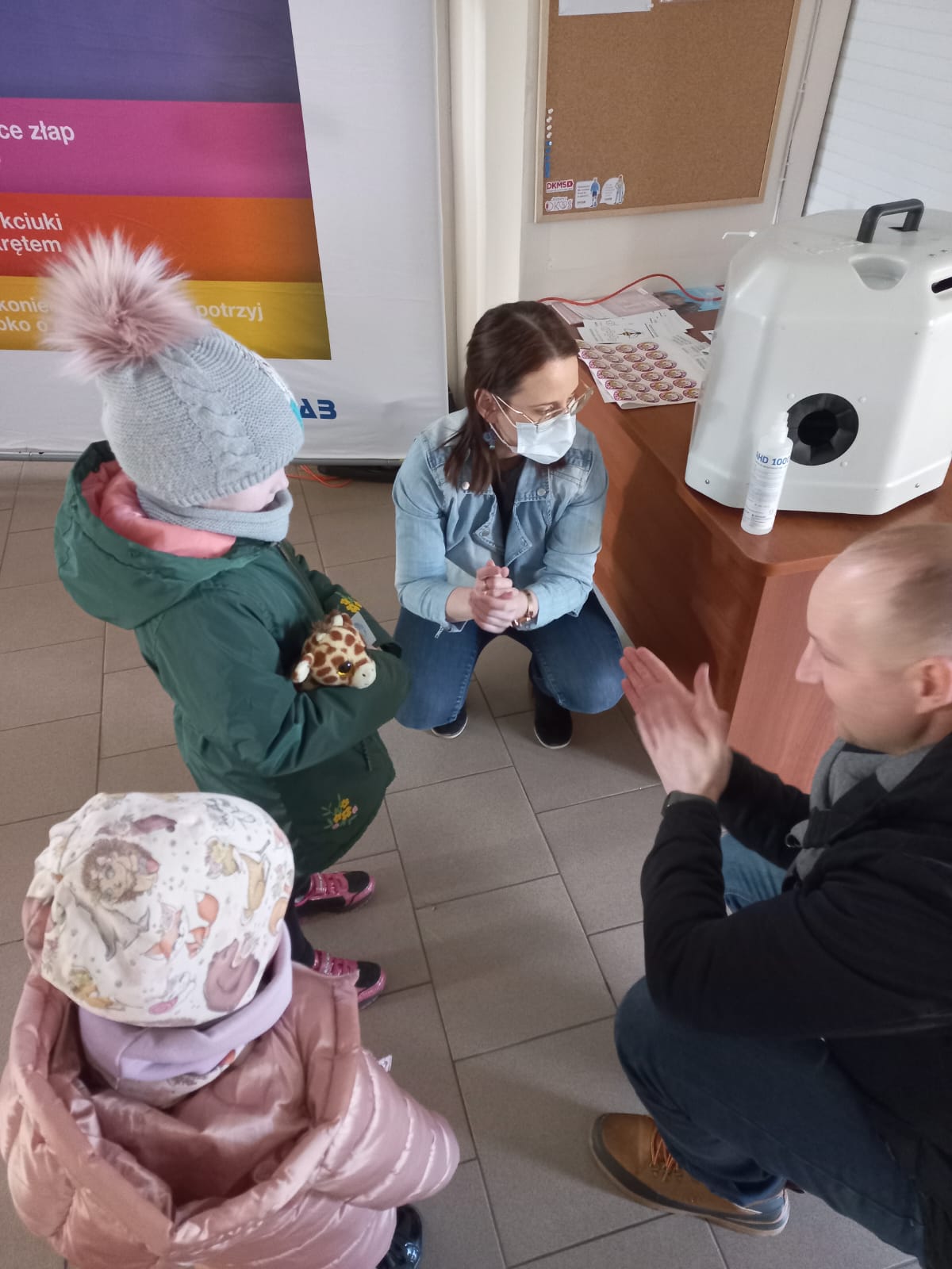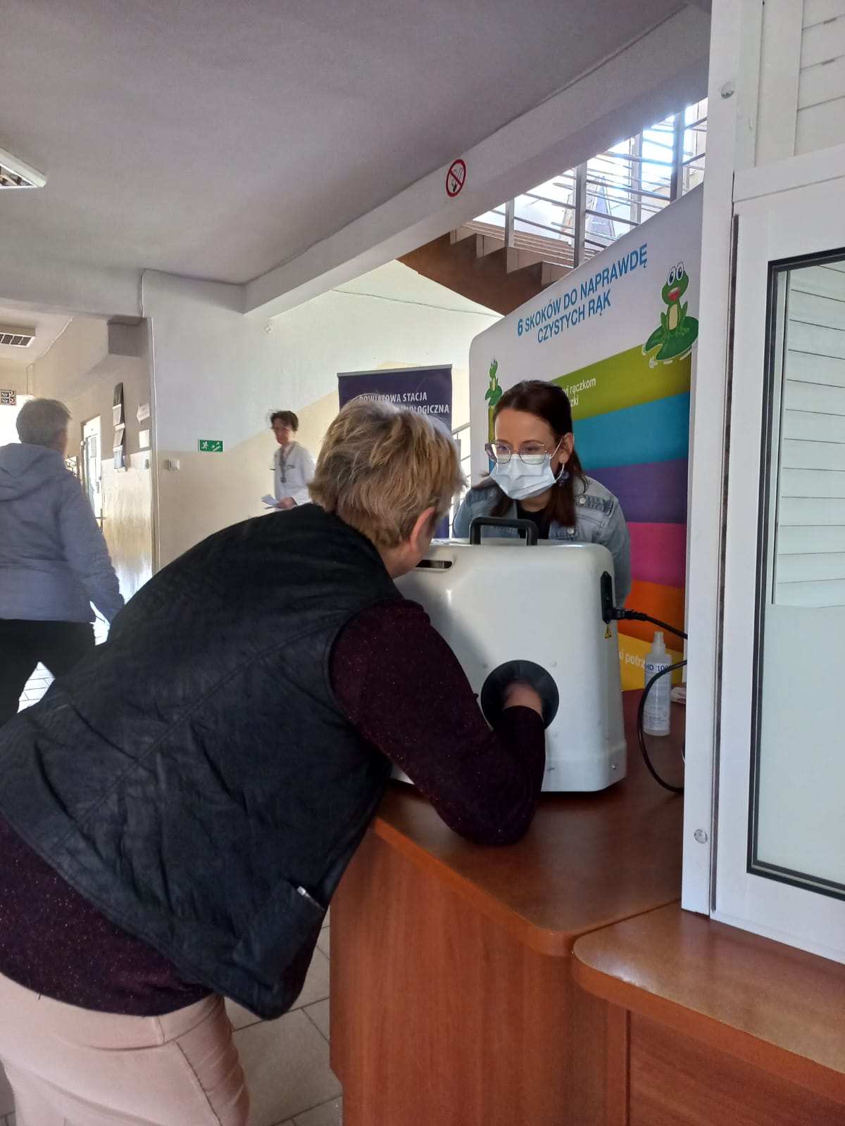 Światowy Dzień Zdrowia obchodzony jest 7 kwietnia. Tegoroczne hasło dnia brzmi: „Zdrowie dla wszystkich". W ramach obchodów dnia odwiedziliśmy olecką „przychodnię”, gdzie przypominaliśmy o tym, że prawidłowe mycie i dezynfekcja dłoni są dla nas ważne na co dzień. Lampa UV oraz specjalny fluorescencyjny żel pomagały własnym okiem zobaczyć na swoich dłoniach miejsca pominięte, niepokryte żelem do dezynfekcji.