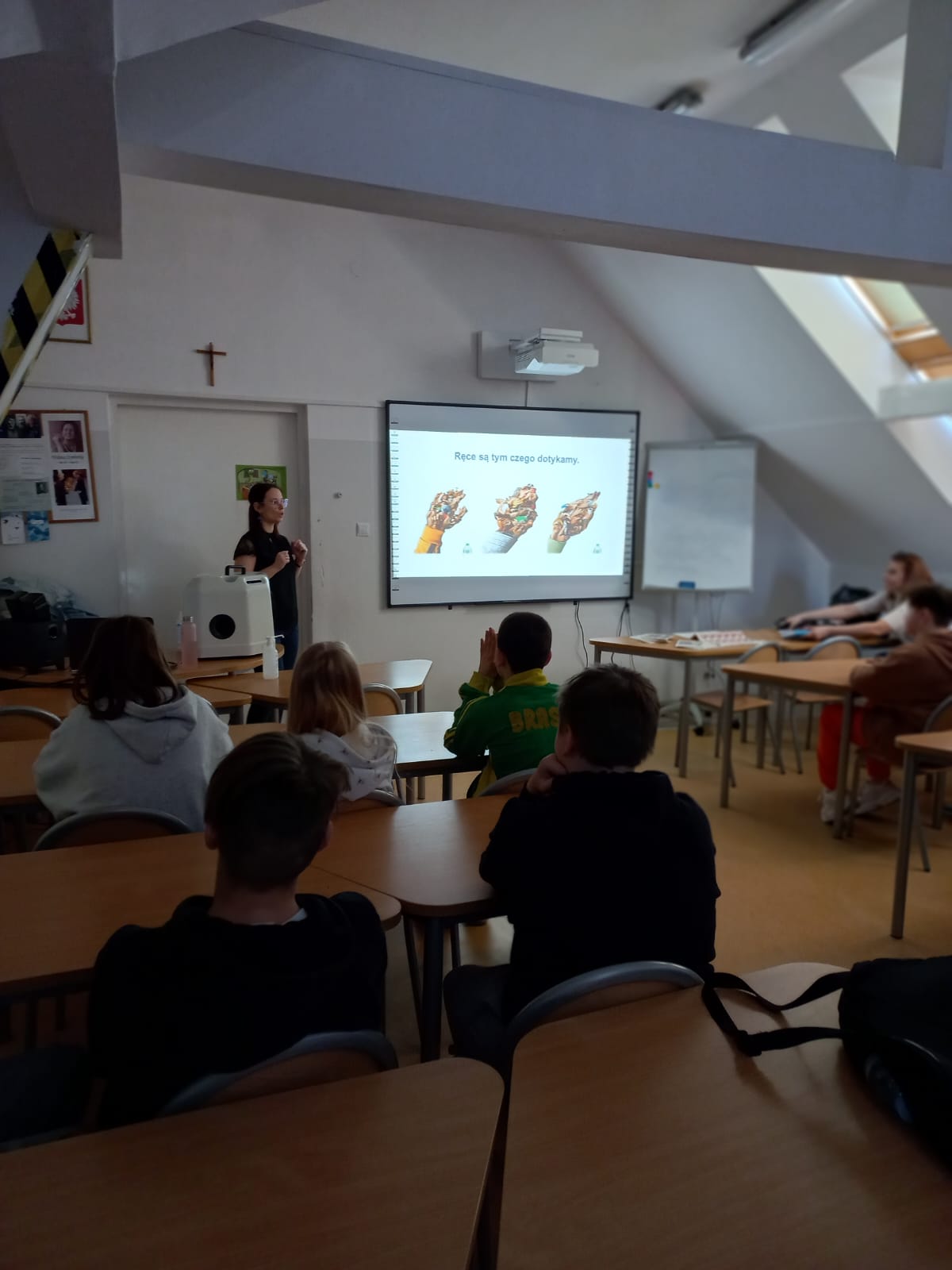 O higienie osobistej na co dzień i w okresie dorastania rozmawialiśmy z uczniami starszych klas w Szkole Podstawowej nr 3 im. Jana Pawła II w Olecku. Podczas trzech spotkań zorganizowanych w ramach obchodów Światowego Dnia Zdrowia również używaliśmy lampy uv, pod którą nasi słuchacze sprawdzali skuteczność dezynfekcji dłoni. Dzięki takiej obserwacji i wyciąganiu wniosków młodzi ludzie na dłużej zapamiętają zagadnienia związane z myciem i dezynfekcją.