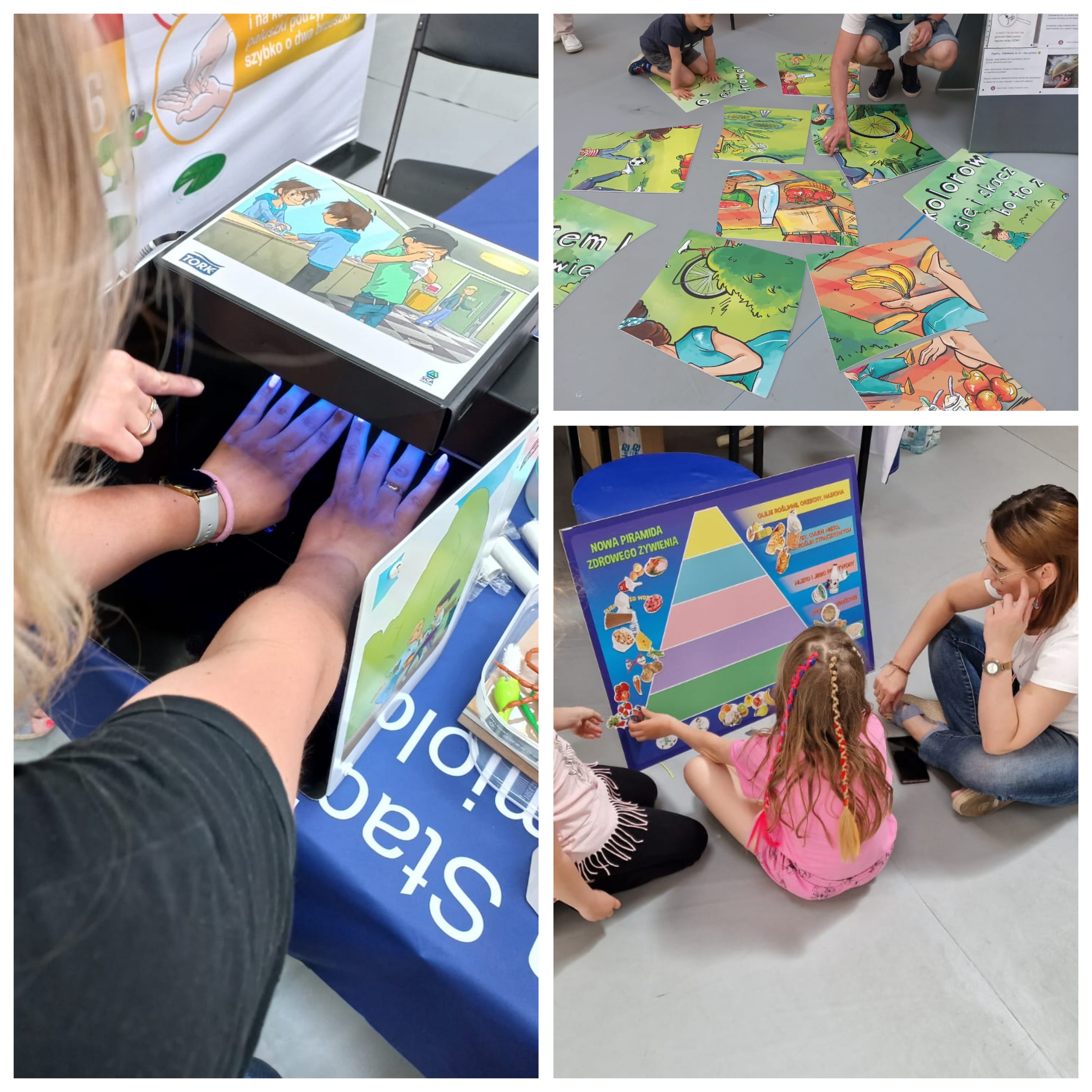 - promowaliśmy zdrowy styl życia z wykorzystaniem: wielkoformatowych puzzli do układania przez dzieci i rodziców, kolorowanek edukacyjnych, roll-up z piramidą aktywności fizycznej młodzieży, roll-up z informacjami nt. profilaktyki HIV/AIDS.