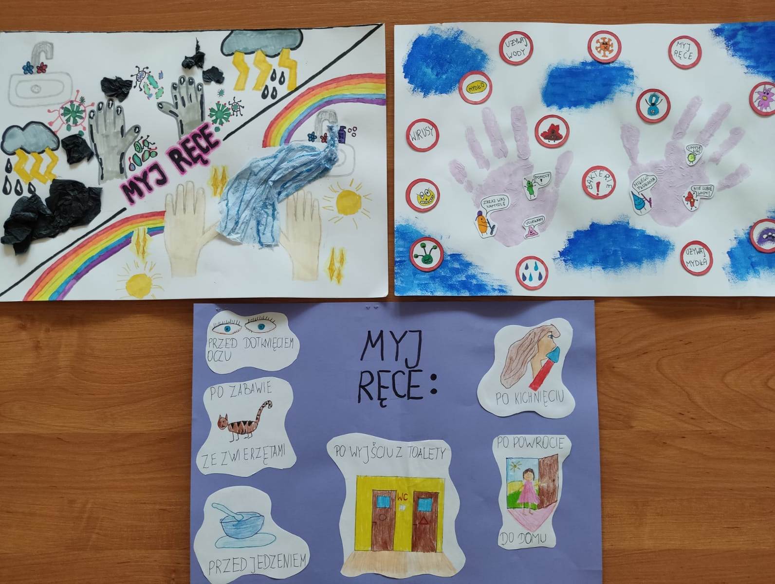 Dziękujemy za wykonanie prac dzieciom w ramach Wojewódzkiego konkursu plastycznego „Myję ręce, bo wiem więcej - Ty nam powiedz, czy wiesz więcej, jak należy dbać o ręce?”.