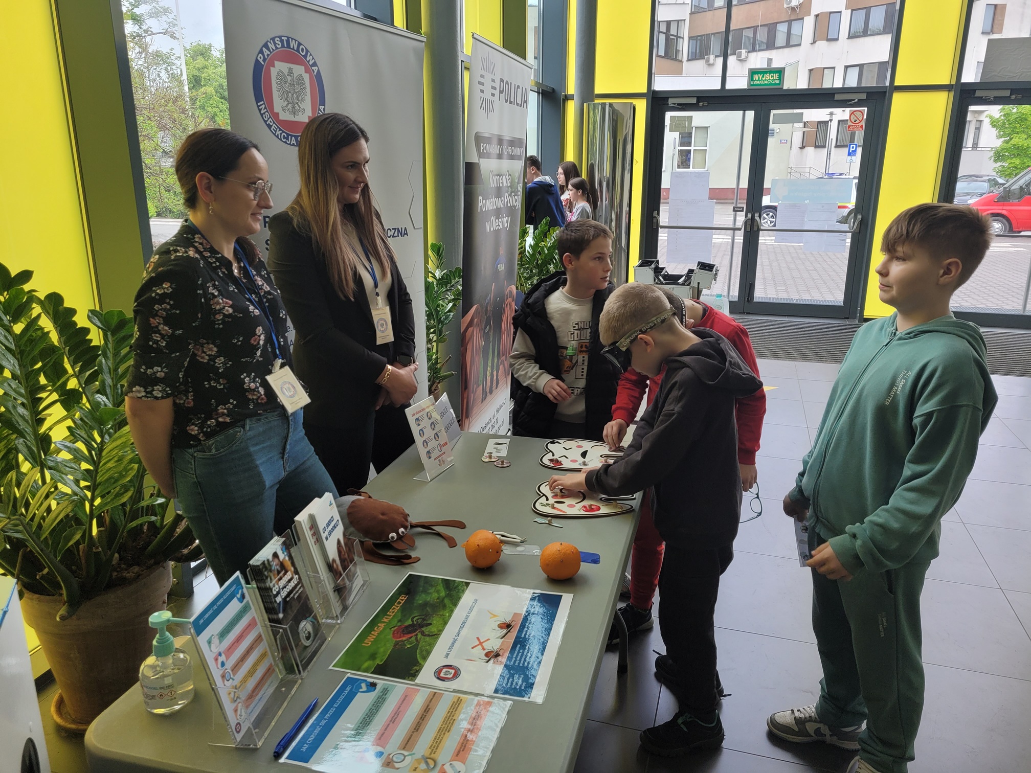 W przerwach między rozgrywkami uczniowie odwiedzali stoiska profilaktyczne, które zostały przygotowane przez Powiatową Stację Sanitarno -Epidemiologiczną w Oleśnicy oraz Komendę Powiatową Policji w Oleśnicy.