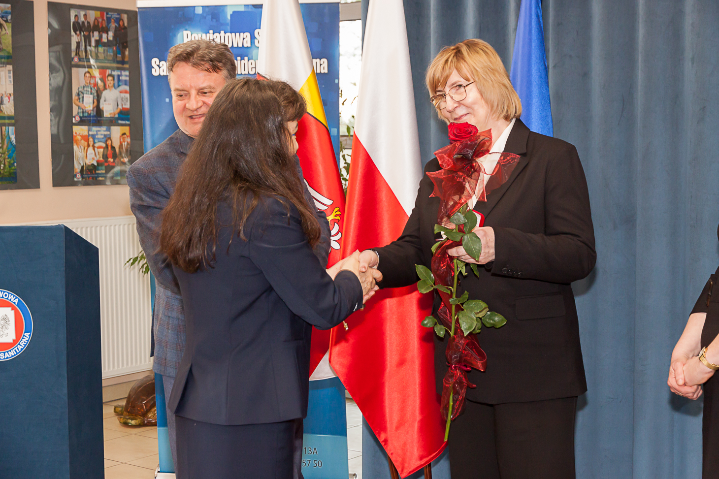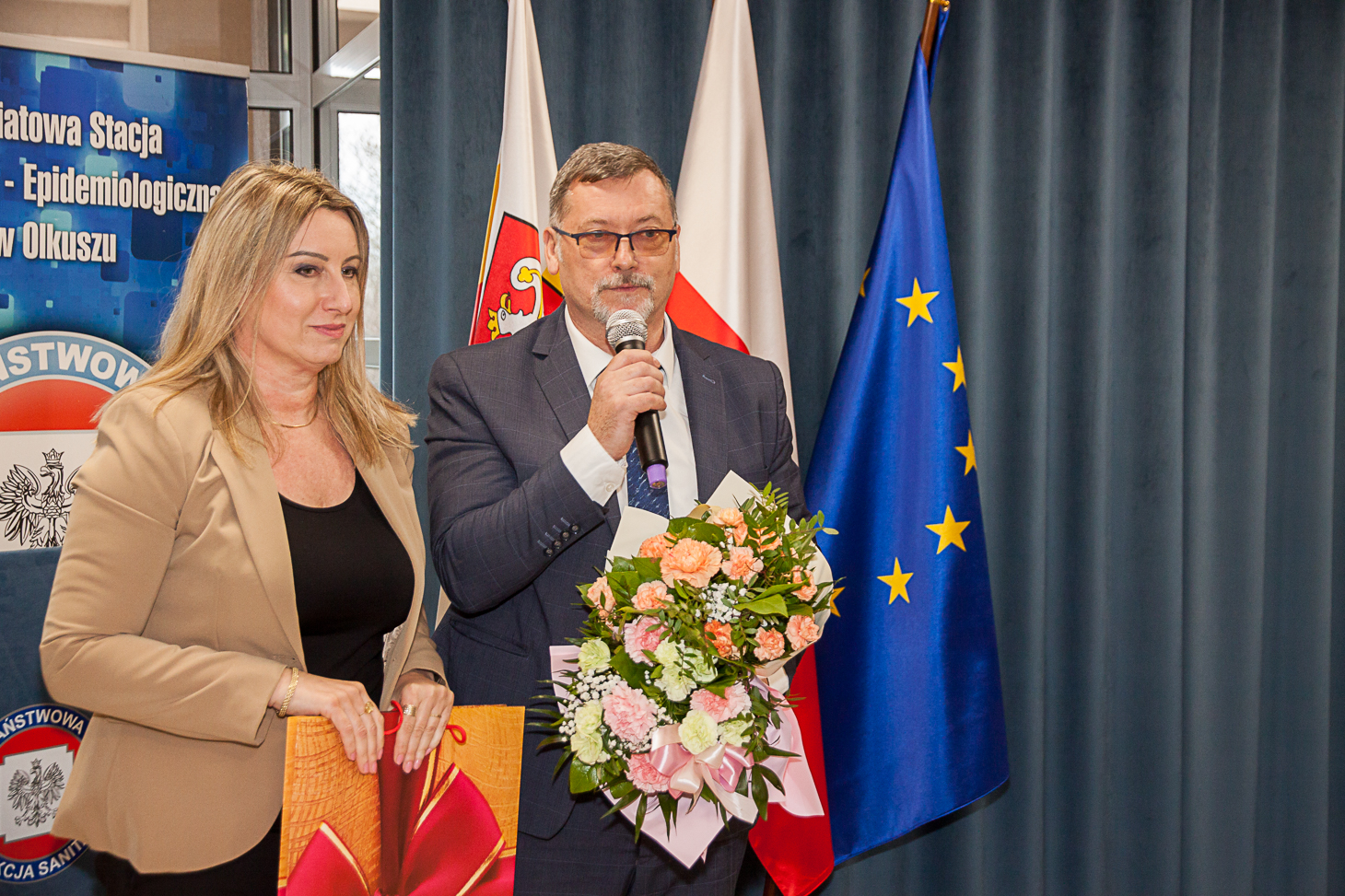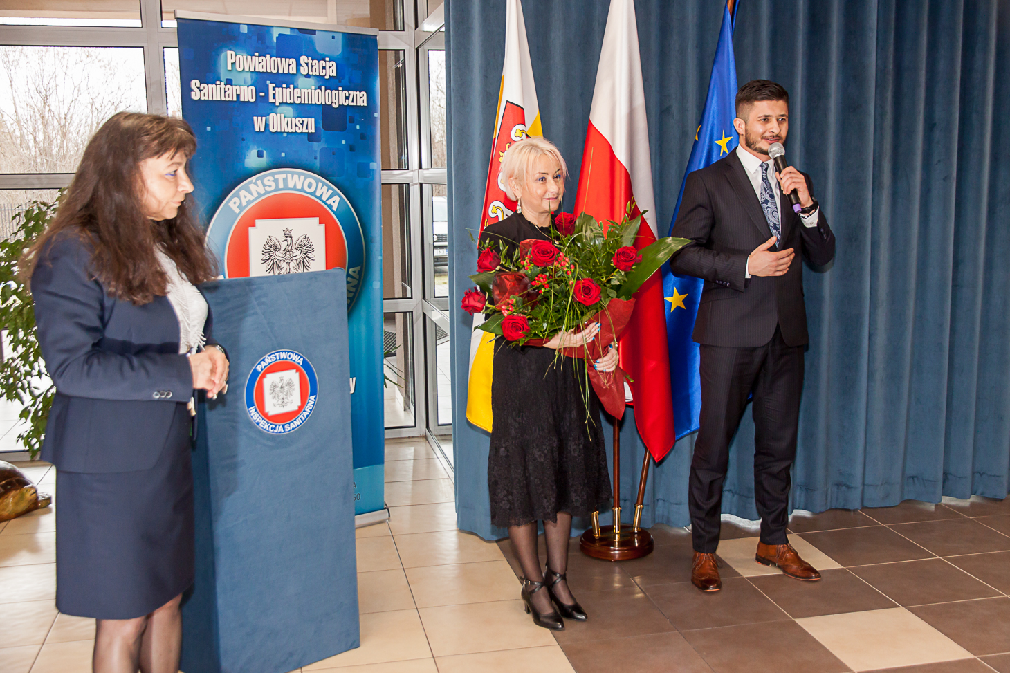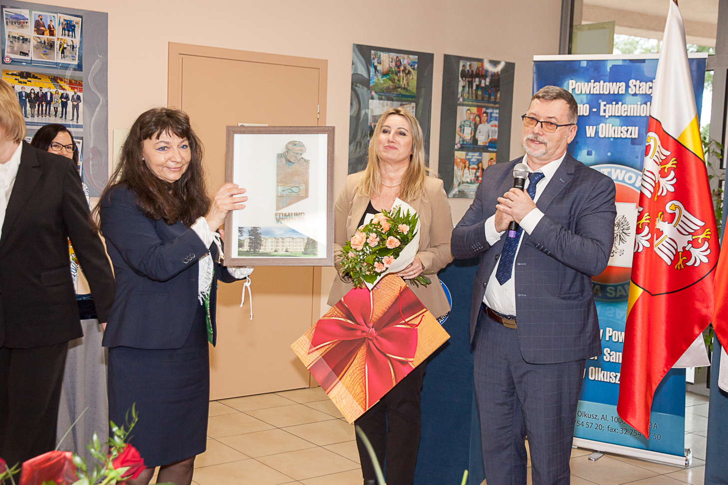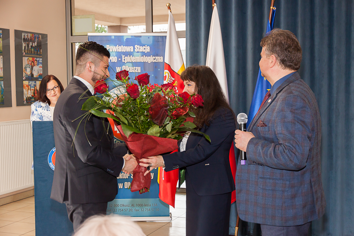 Wszystkim pracownikom służb sanitarnych za ogrom pracy i trud w działania na rzecz zapewnienia bezpieczeństwa zdrowotnego mieszkańców naszego regionu dziękowali: obecny na uroczystości Starosta Olkuski Bogumił Sobczyk, Przewodniczący Rady Powiatu Olkuskiego Jacek Osuch oraz Dyrektor Małopolskiego Szpitala Chorób Płuc i Rehabilitacji im. Edmunda Wojtyły – Krzysztof Grzesik. List gratulacyjny od Zarządu Nowego Szpitala w Olkuszu na ręce Państwowego Powiatowego Inspektora Sanitarnego w Olkuszu złożyła Małgorzata Gawron.