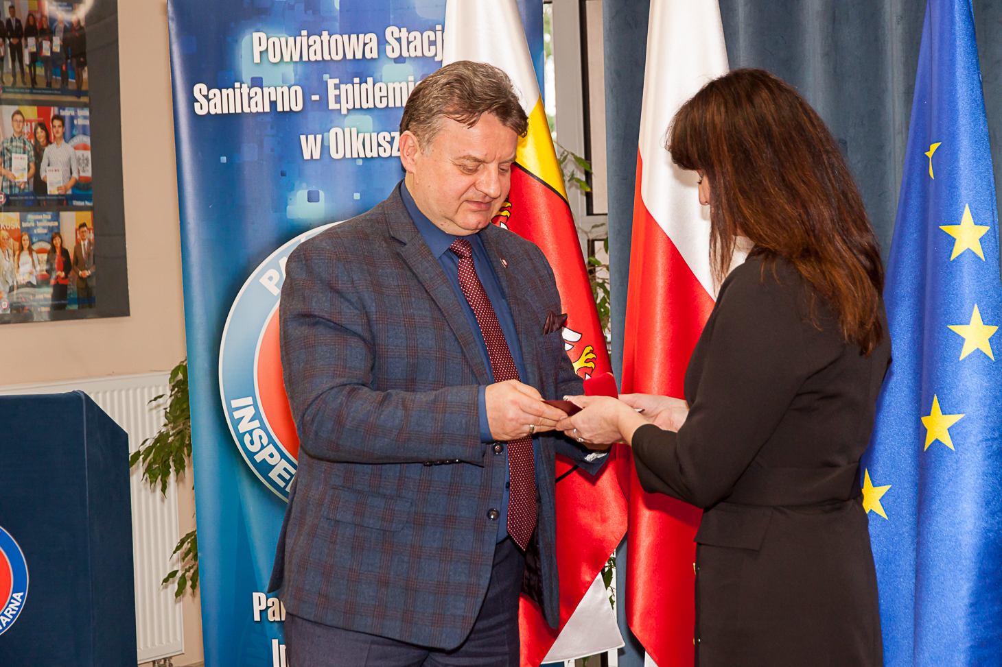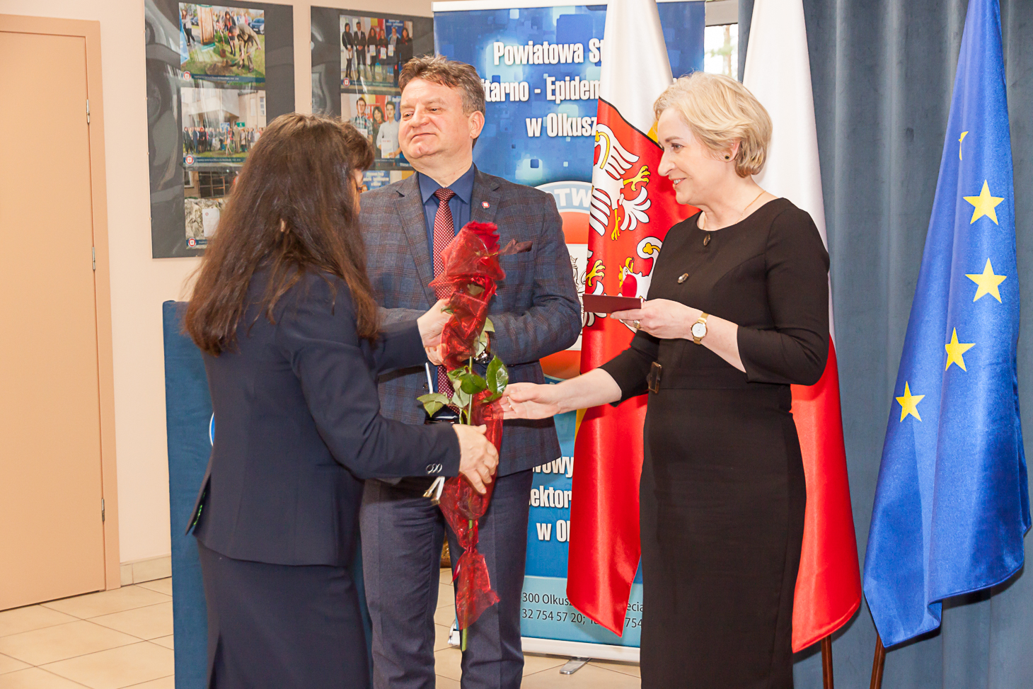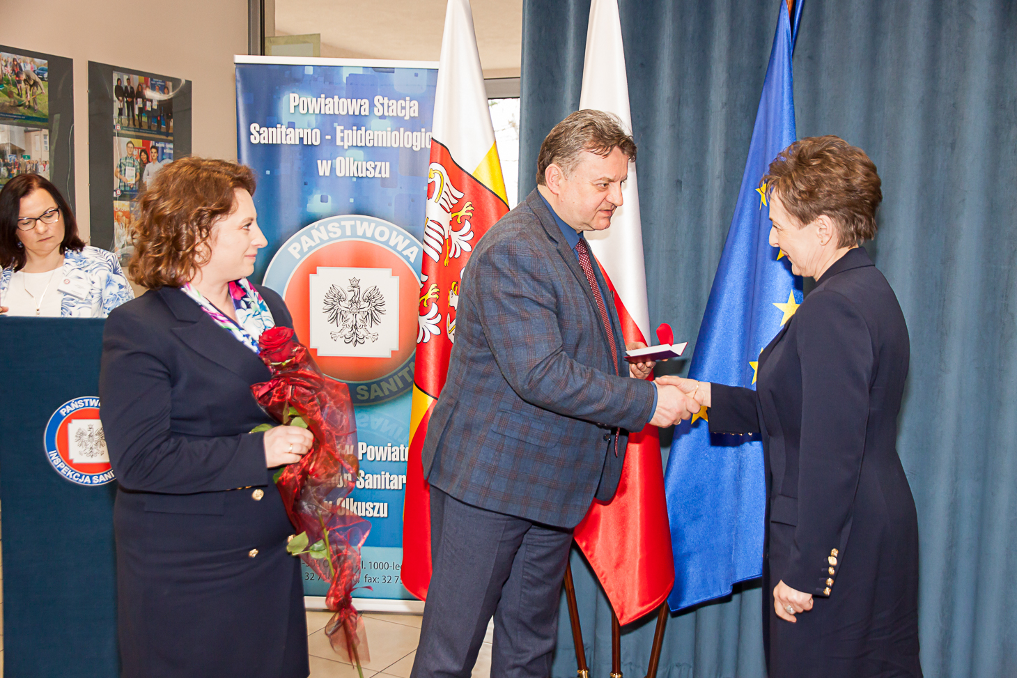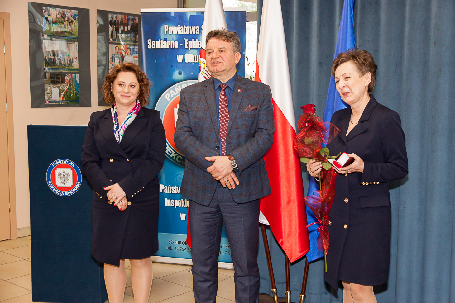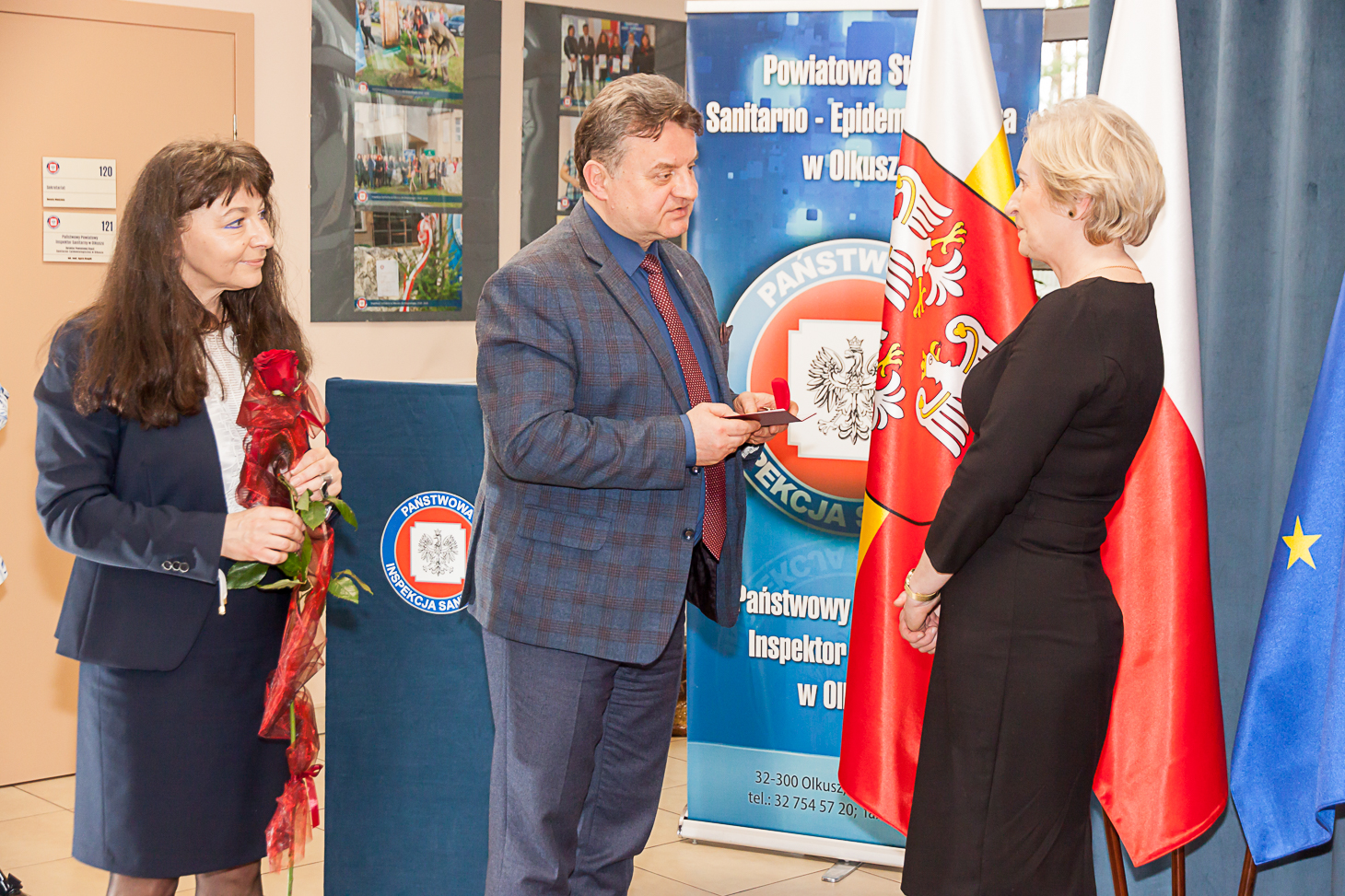 Aktu wręczenia odznaczeń w imieniu Ministra Zdrowia Adama Niedzielskiego dokonał Małopolski Państwowy Wojewódzki Inspektor Sanitarny Jarosław Foremny. Honorową Odznakę Ministra Zdrowia otrzymały: Iwona Chrząszcz z PSSE w Miechowie, Monika Kowalska – Maj z PSSE w Proszowicach, Stanisława Kwiecień i Lucyna Magiera z PSSE w Oświęcimiu, Beata Rdest i Ewa Żuchowicz z PSSE w Olkuszu.