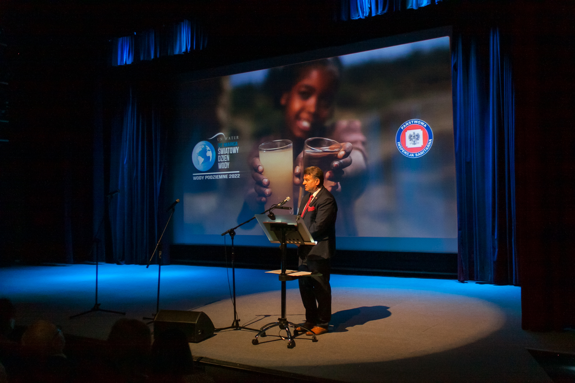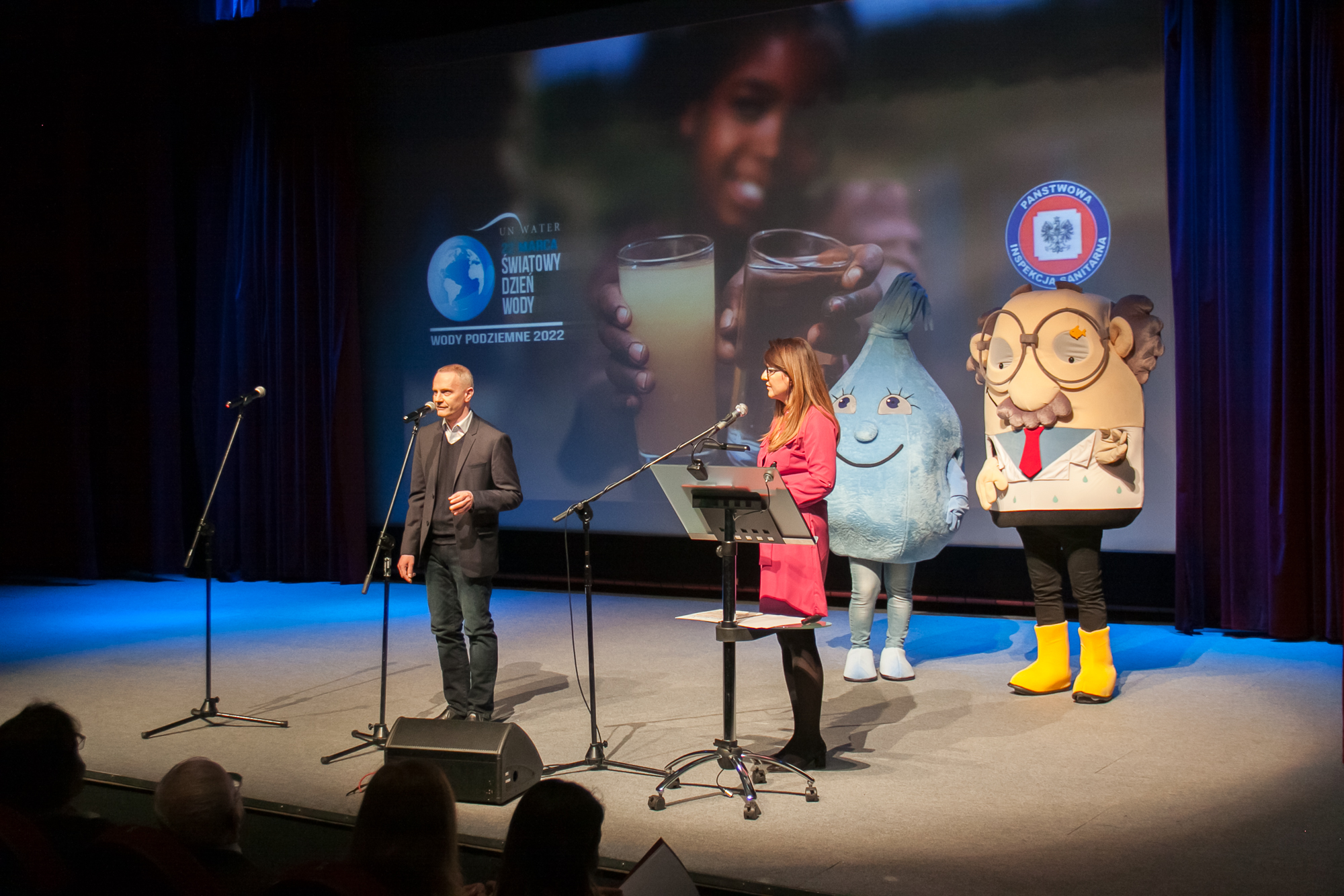 W dniu 24 marca 2022 roku w Miejskim Ośrodku Kultury w Olkuszu odbyła się konferencja zorganizowana w ramach uroczystych obchodów Światowego Dnia Wody 2022 w powiecie olkuskim. Zgodnie z tegorocznym hasłem przewodnim szczególną uwagę zwrócono na wody podziemne, które odgrywają kluczową rolę w systemie wodnym świata. Organizatorami konferencji byli Powiatowa Stacja Sanitarno-Epidemiologiczna w Olkuszu, Przedsiębiorstwo Wodociągów i Kanalizacji Sp. z o. o. w Olkuszu i Stowarzyszenie Teatralno-Literackie w Olkuszu. Gościem Honorowym konferencji był Pan Jarosław Foremny – Małopolski Państwowy Wojewódzki Inspektor Sanitarny.