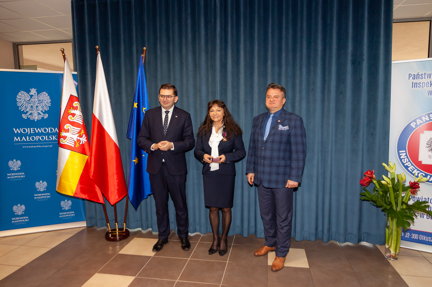 29 grudnia 2022 roku w Powiatowej Stacji Sanitarno-Epidemiologicznej w Olkuszu odbyło się spotkanie świąteczno-noworoczne władz, służb i inspekcji powiatu olkuskiego. Podczas uroczystości Wojewoda Małopolski Łukasz Kmita, w imieniu Prezydenta Rzeczypospolitej Polskiej Andrzeja Dudy, odznaczył Złotym Krzyżem Zasługi Państwowego Powiatowego Inspektora Sanitarnego w Olkuszu lek. med. Agatę Knapik.