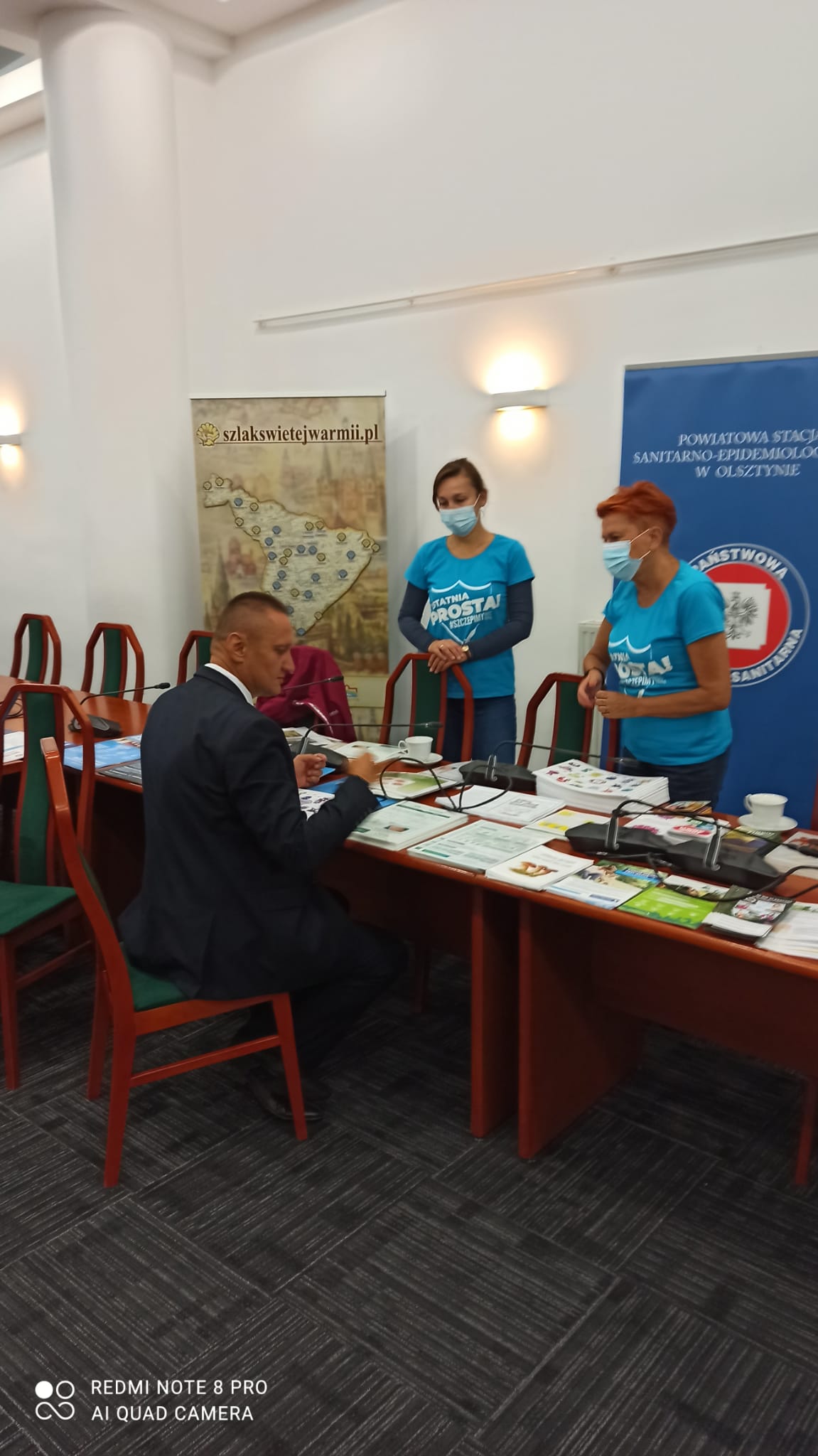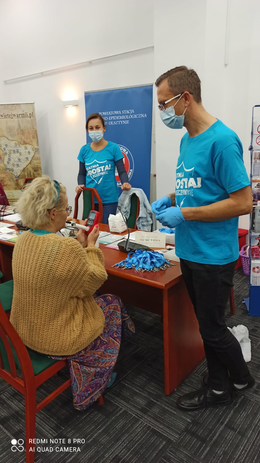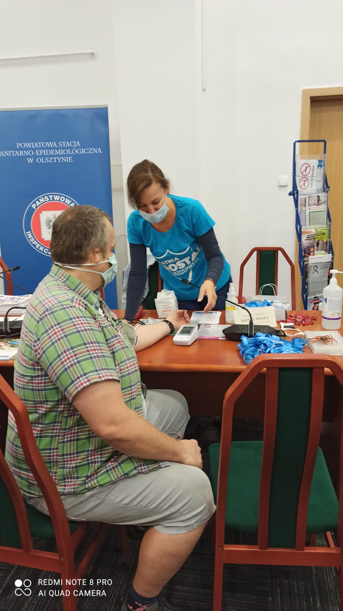 31 sierpnia 2021r. w Starostwie Powiatowym w Olsztynie podczas akcji „Zostań ratownikiem życia ODDAJ KREW” pracownicy sekcji Promocji Zdrowia i Oświaty Zdrowotnej Powiatowej Stacji Sanitarno-Epidemiologicznej w Olsztynie prowadzili stoisko informacyjne popularyzując zdrowy styl życia wśród mieszkańców Olsztyna i powiatu olsztyńskiego oraz zachęcali do podjęcia szczepień p-ko COVID-19.