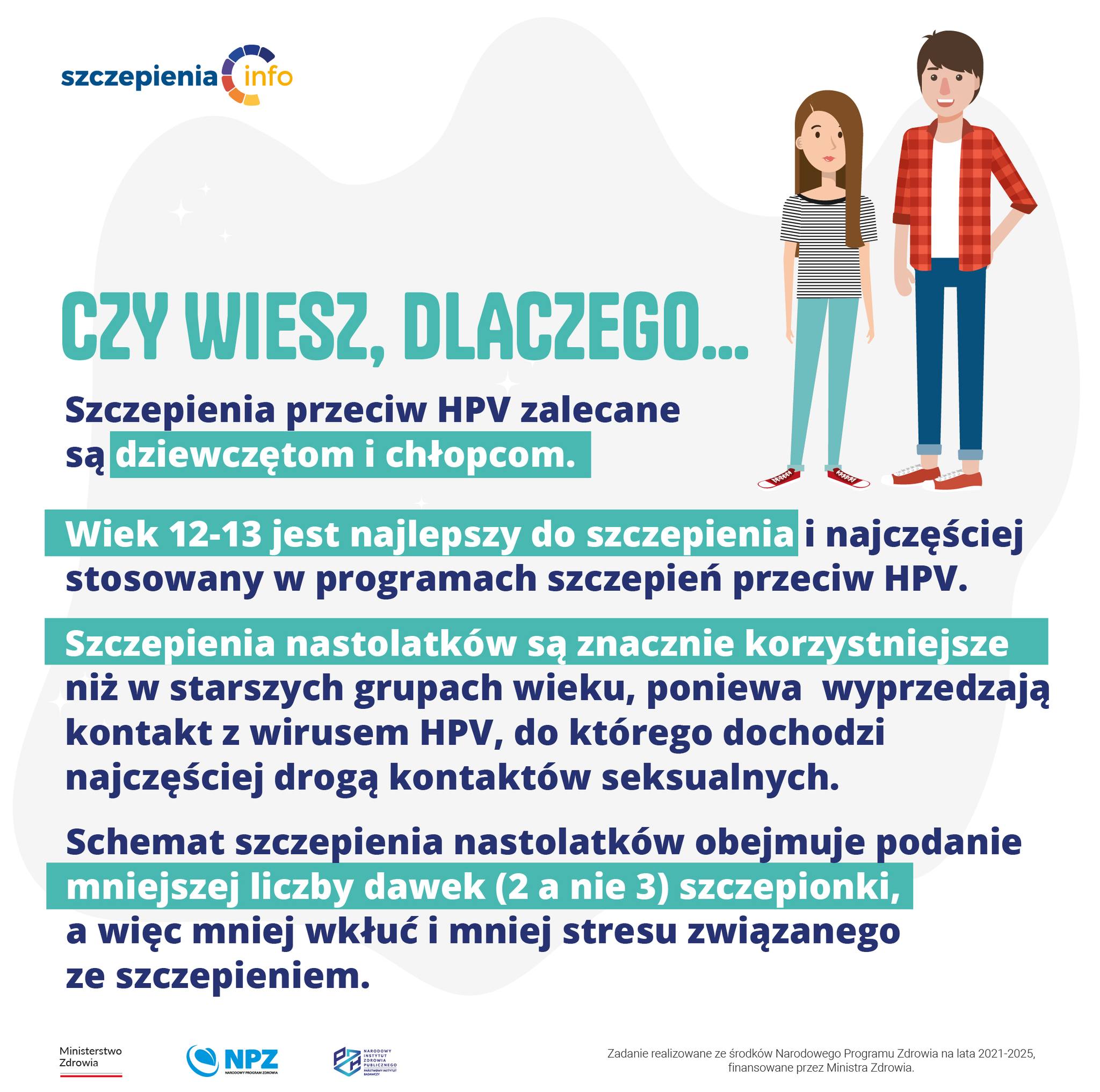 Bezpłatne szczepienia przeciw HPV dla dziewcząt i chłopców w wieku 12-13 lat.