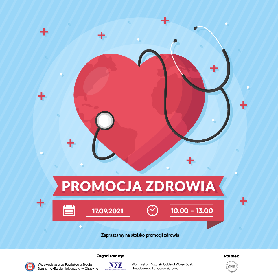 Zainwestuj w zdrowie już dziś. 17 września 2021 r. w godz. 10.00 – 13.00 zapraszamy na stoisko promocji zdrowia. Znajdziesz nas w Galerii „AURA” w Olsztynie, aleja Marszałka Józefa Piłsudskiego 16.