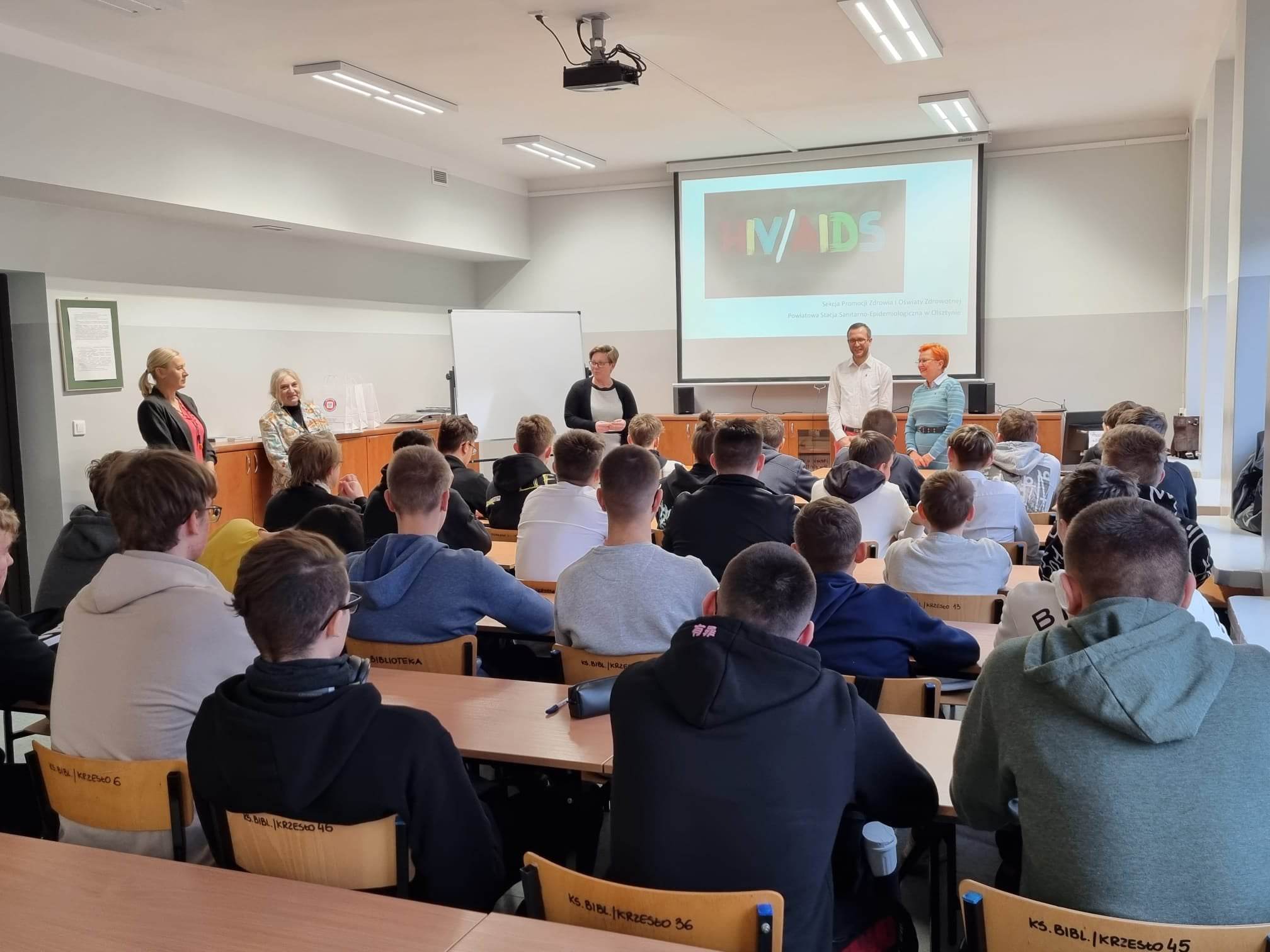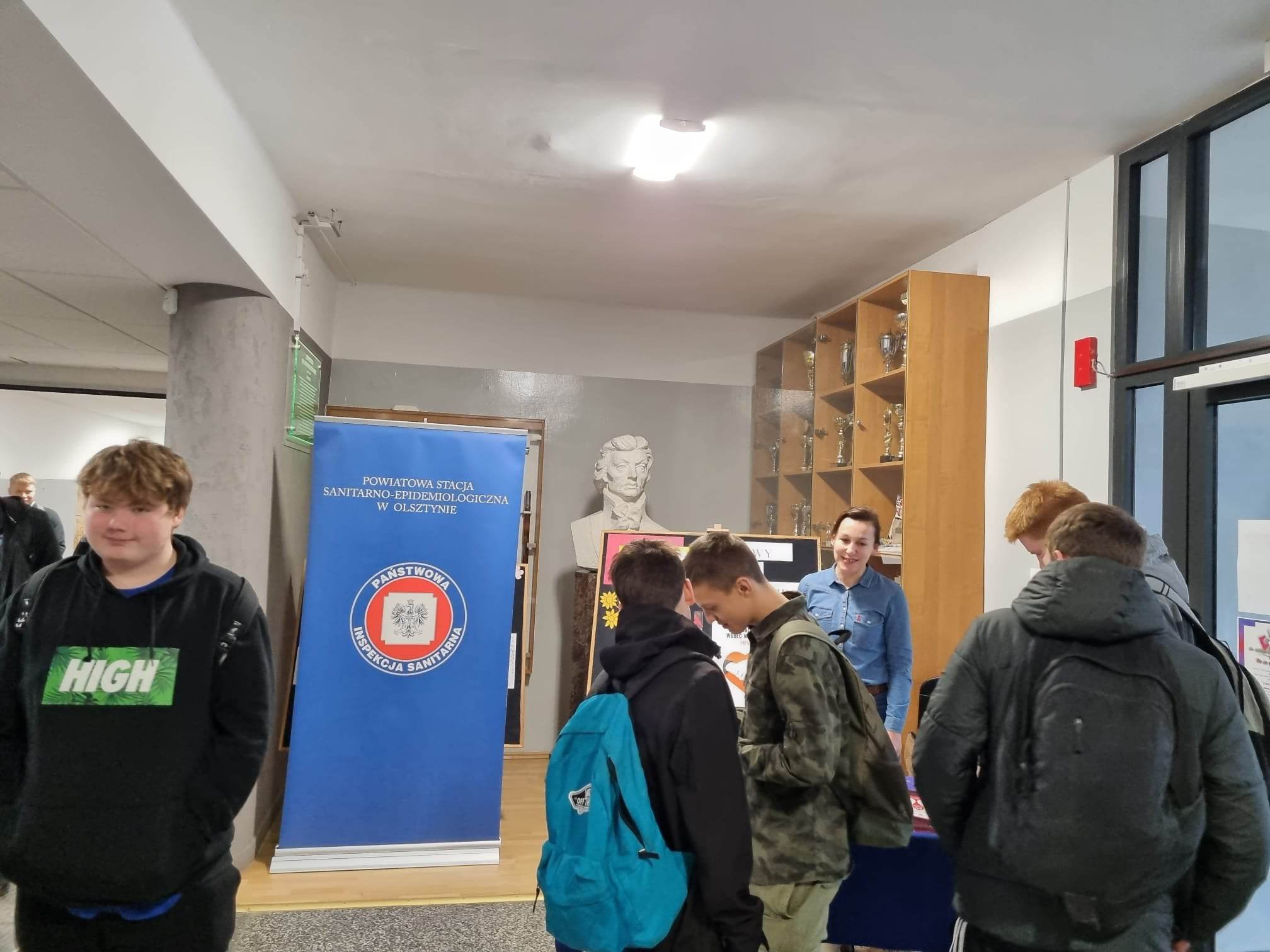 Uczniowie wysłuchali wykładu przeprowadzonego przez pracowników sekcji Promocji Zdrowia i Oświaty Zdrowotnej PSSE Olsztyn pt. „HIV/AIDS – wiedza ratuje życie”, a także wzięli udział w konkursie/quizie wiedzy na temat HIV/AIDS. Ponadto w holu szkoły zorganizowano punkt informacyjny prezentując i dystrybuując materiały edukacyjne.