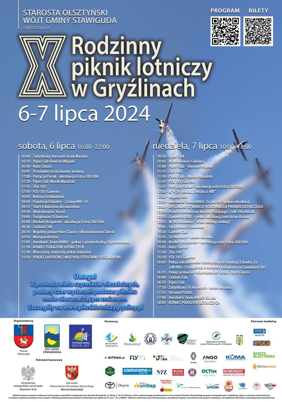 6-7 lipca 2024 r. w Gryźlinach w gminie Stawiguda odbędzie się X Rodzinny piknik lotniczy "Pod Niebem Świętej Warmii"