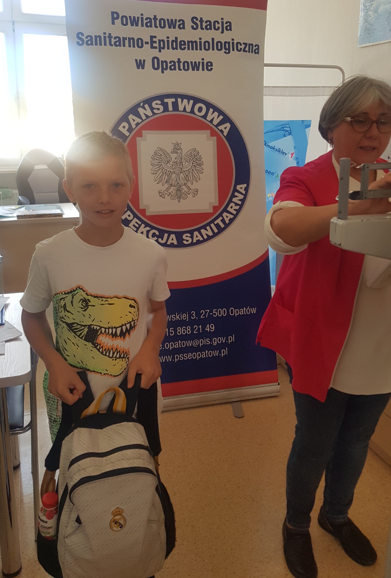 Pracownicy Powiatowej Stacji-Sanitarno Epidemiologicznej w Opatowie przeprowadzili akcję pt. ,,Lekki tornister”. Celem wizyty w szkołach było zweryfikowanie ciężaru plecaków w stosunku do wagi uczniów oraz rozpowszechnianie informacji na temat profilaktyki wad postawy.