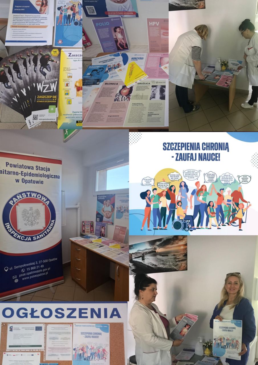 Pracownicy Powiatowej Stacji Sanitarno-Epidemiologicznej w Opatowie prowadzili dystrybucję ulotek w podmiotach leczniczych na terenie powiatu opatowskiego oraz prowadzili działania edukacyjno-informacyjne dotyczące roli szczepień ochronnych w zapobieganiu chorobom zakaźnym.