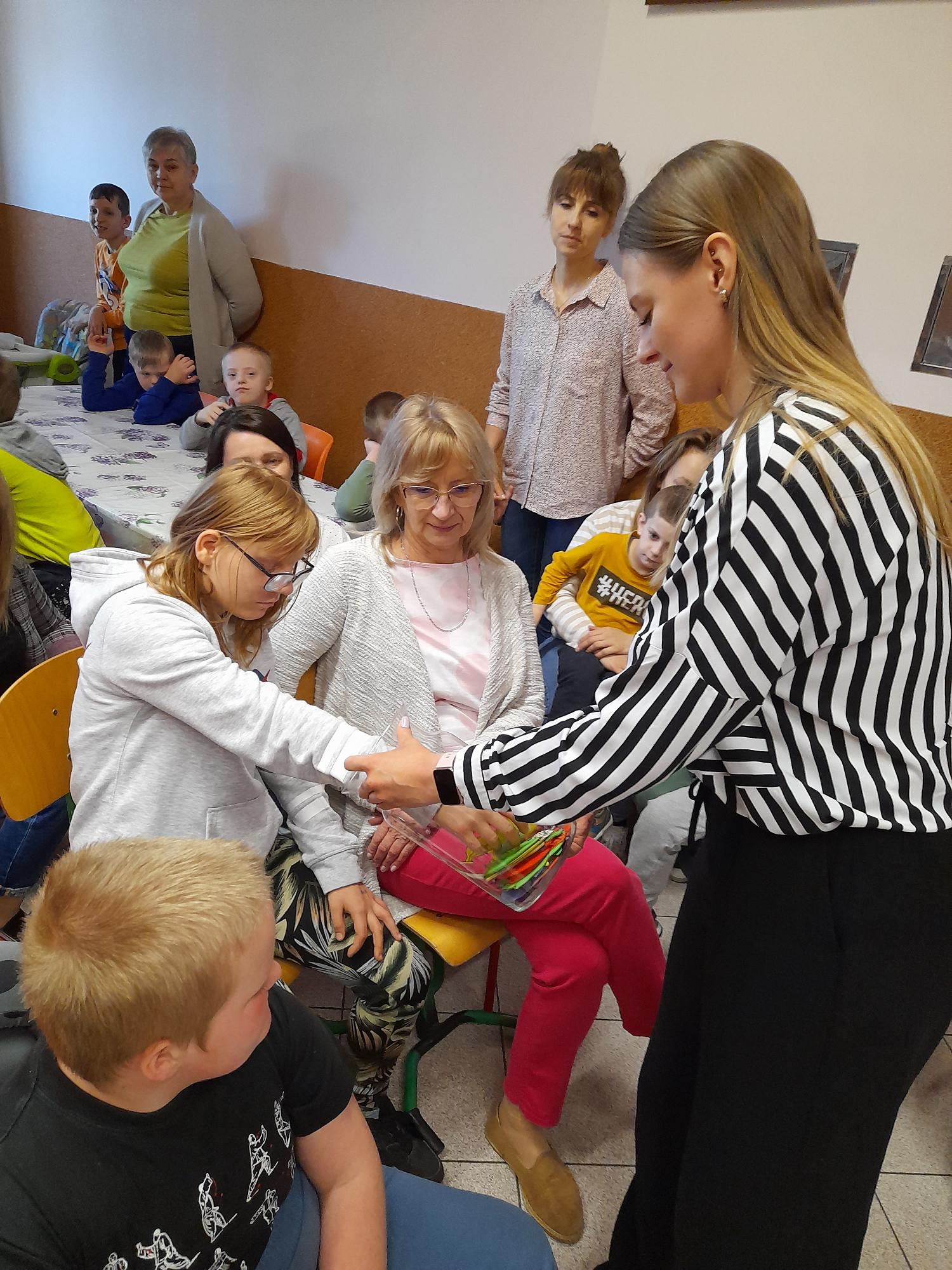 Tematem spotkania było zdrowe odżywianie i aktywność fizyczna. Omówiono wraz z uczniami Piramidę Zdrowego Żywienia oraz rolę prawidłowo prowadzonej higieny osobistej w zakresie mycia rąk i zębów. Wychowankowie ośrodka w Niemienicach wykazali się dobrą wiedzą na temat zdrowych i niezdrowych produktów oraz bardzo chętnie uczestniczyli w proponowanych formach aktywności.