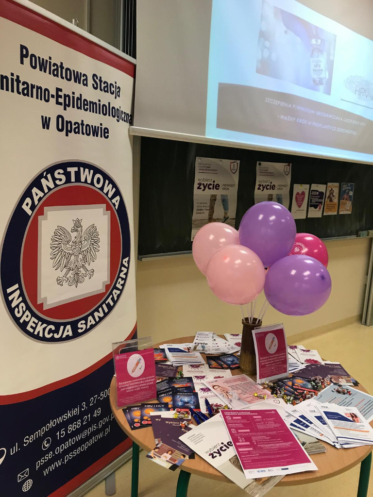 W dniu 18.10.2024 r. pracownicy Powiatowej Stacji Sanitarno -Epidemiologicznej w Opatowie uczestniczyli w spotkaniu w Liceum Ogólnokształcącym im. Bartosza Głowackiego w Opatowie. Przedstawiono znaczenie szczepień ochronnych przeciwko HPV oraz omówiono korzyści zdrowotne związane z profilaktyką i zapobieganiem zakażeniom wirusem brodawczaka ludzkiego, który może prowadzić do rozwoju nowotworów złośliwych.