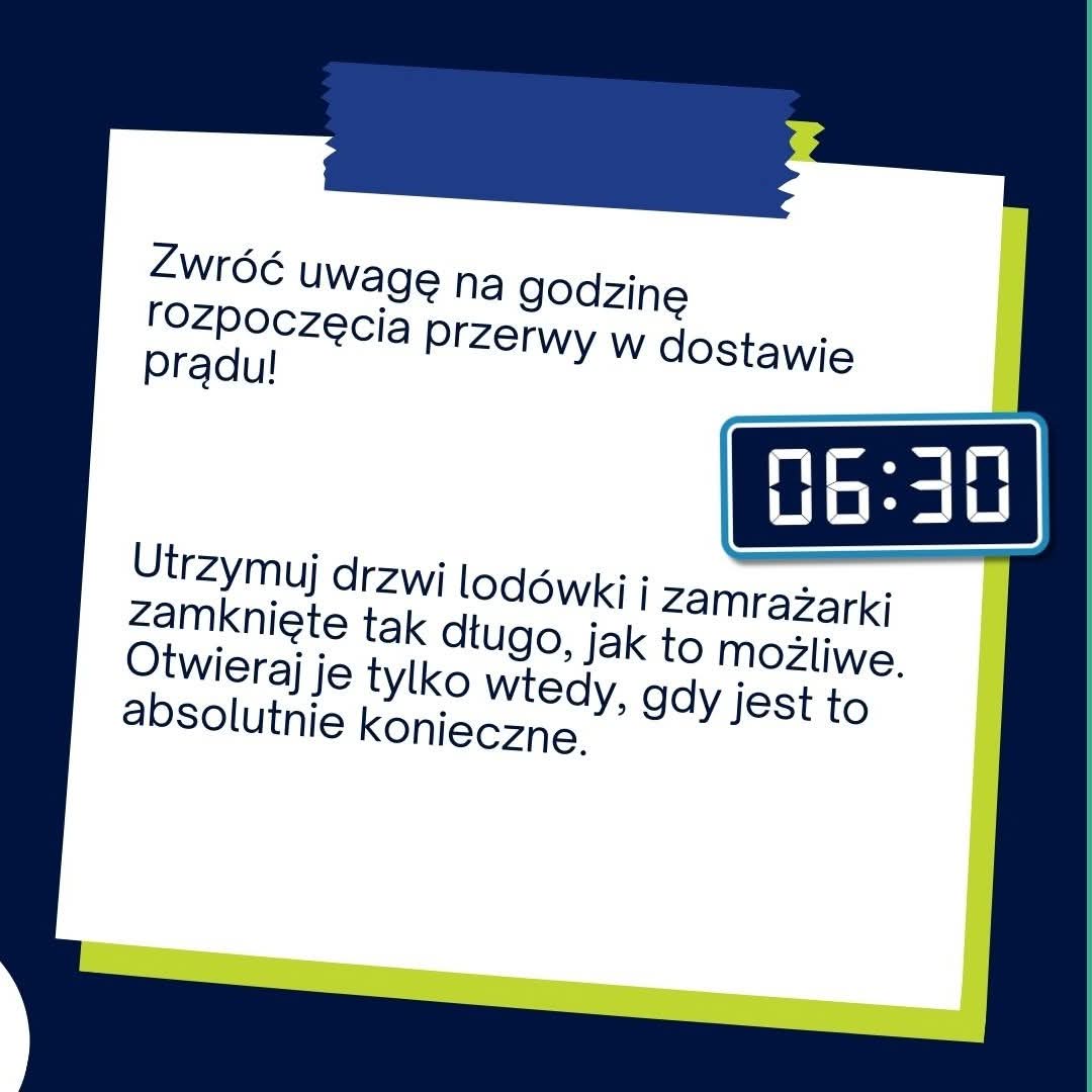 Ulotka informacyjna dotycząca bezpieczeństwa żywności w sytuacji przerwy w dostawie energii elektrycznej