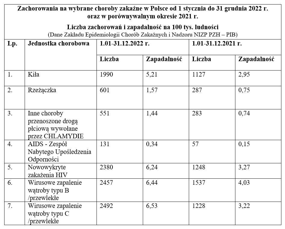 W 2022 roku odnotowano gwałtowny wzrost zachorowań na choroby zakaźne, m.in. na choroby przenoszone drogą płciową.