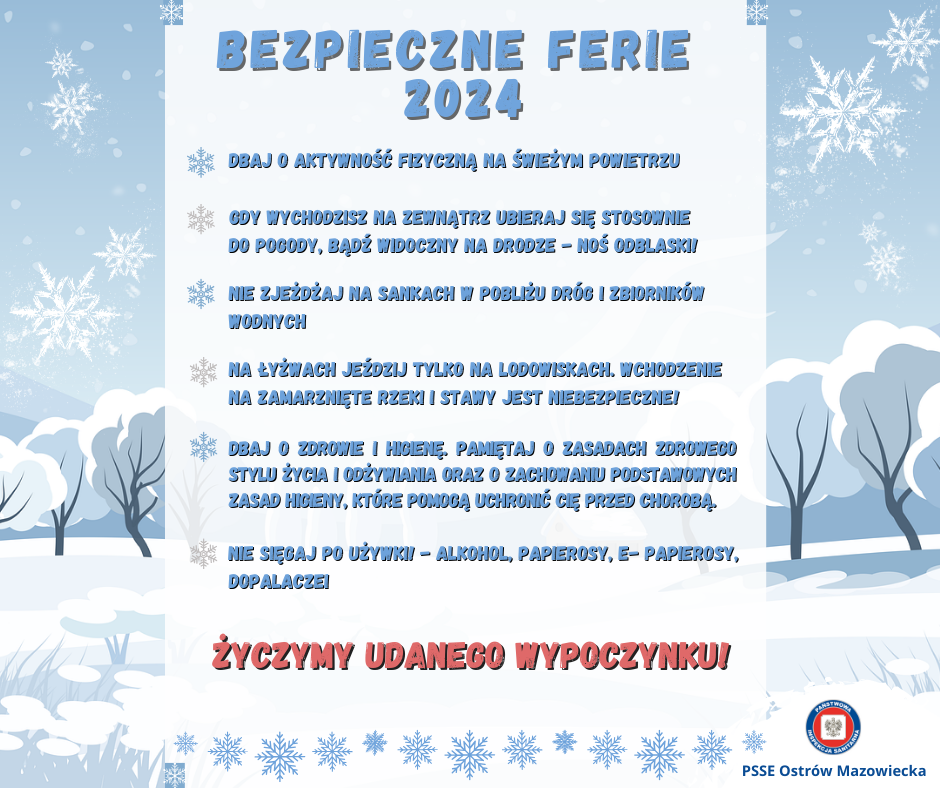 ZASADY BEZPIECZEŃSTWA OBOWIĄZUJĄCE PODCZAS FERII ZIMOWYCH