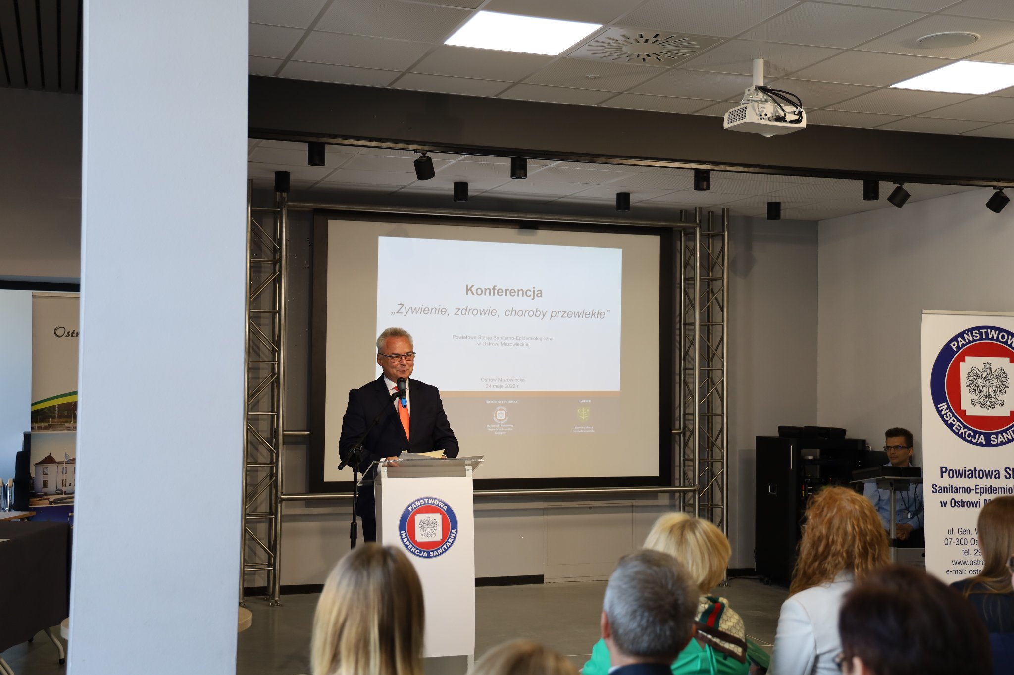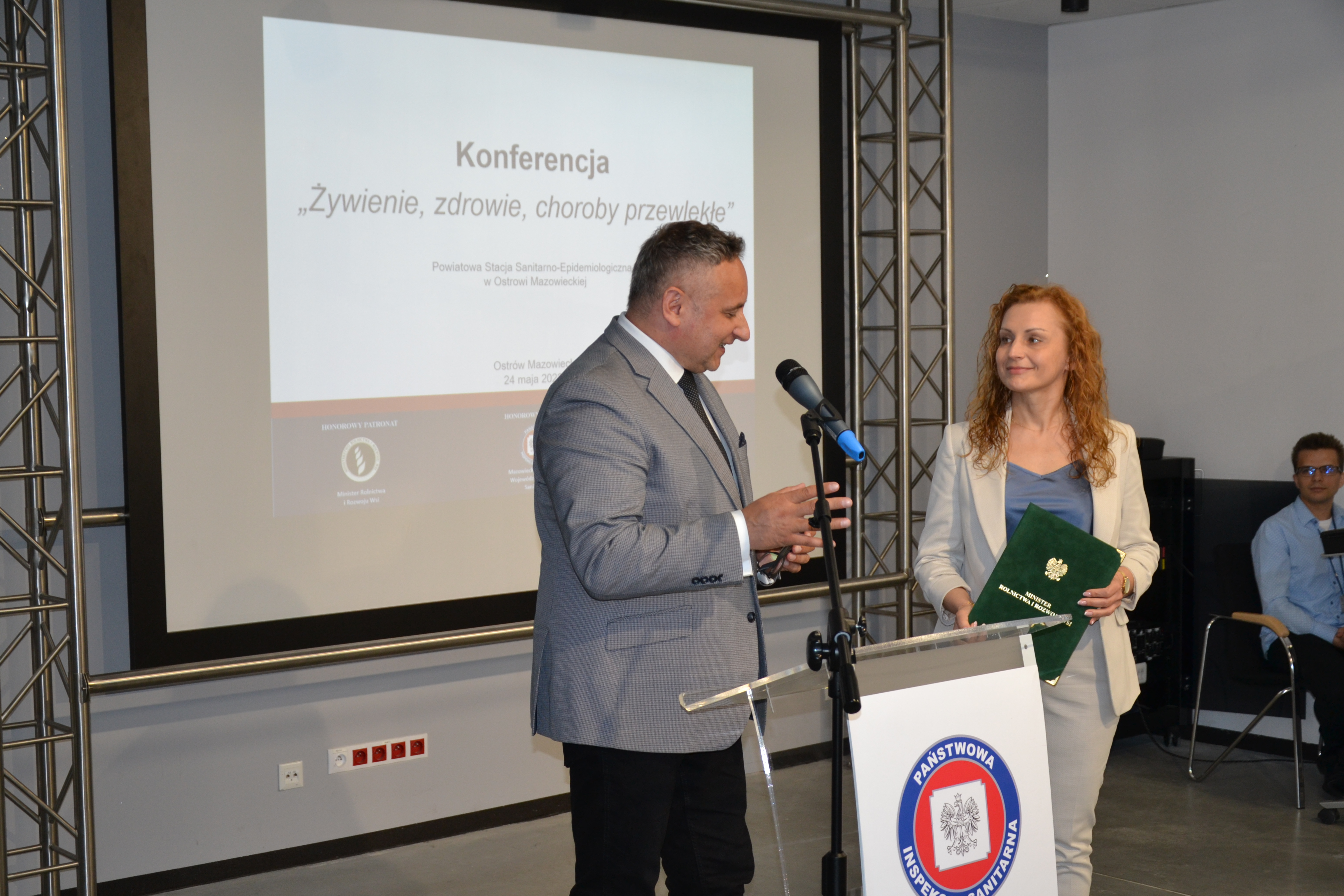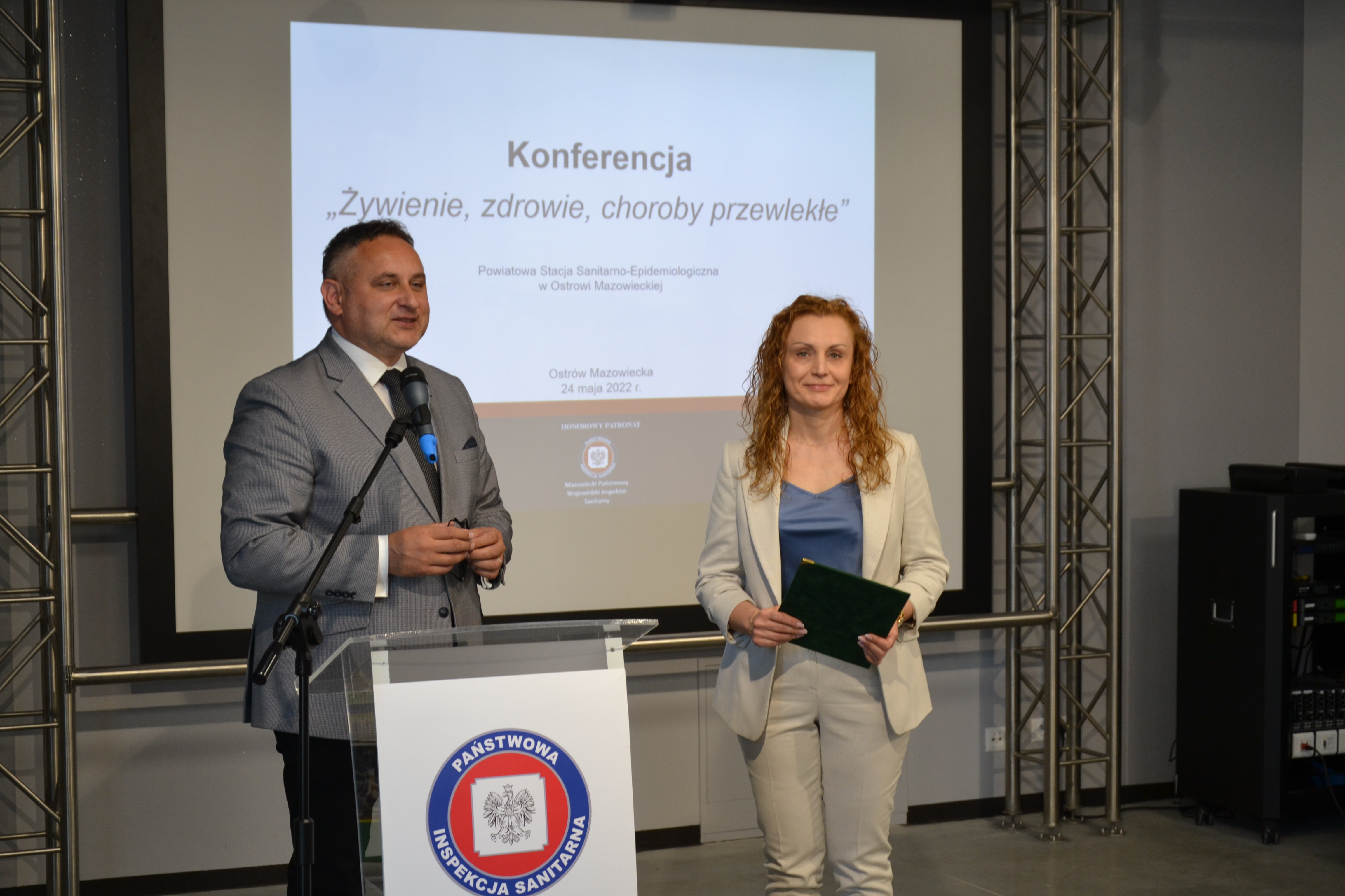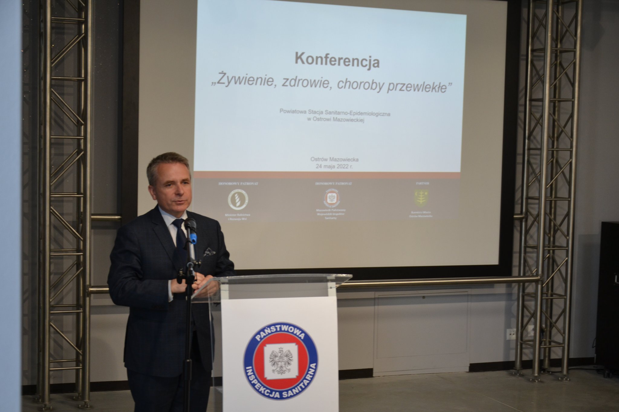 Odżywianie jest jednym z istotnych czynników determinujących stan zdrowia społeczeństwa. Prawidłowe żywienie, bezpieczeństwo żywności, kształtowanie właściwych postaw zdrowotnych, to obecnie aktualne tematy podejmowane przez ekspertów zdrowia publicznego na całym świecie. Mając to na uwadze 24 maja 2022 r. Państwowy Powiatowy Inspektor Sanitarny w Ostrowi Mazowieckiej Pani Magdalena Kaczmarek zorganizowała konferencję pt. "Żywienie, zdrowie, choroby przewlekłe". Patronat honorowy nad tym wydarzeniem objął Wiceprezes Rady Ministrów, Minister Rolnictwa i Rozwoju Wsi Pan Henryk Kowalczyk oraz Mazowiecki Państwowy Wojewódzki Inspektor Sanitarny