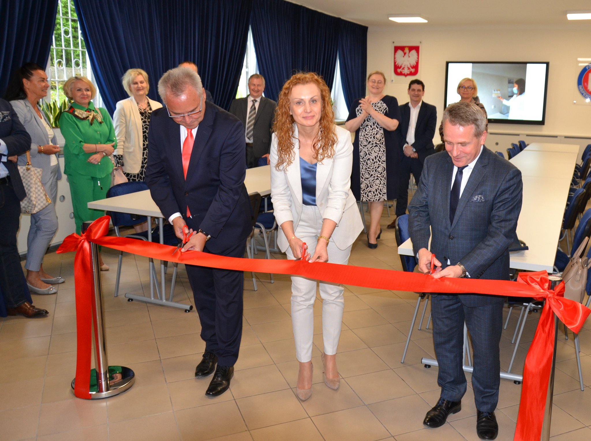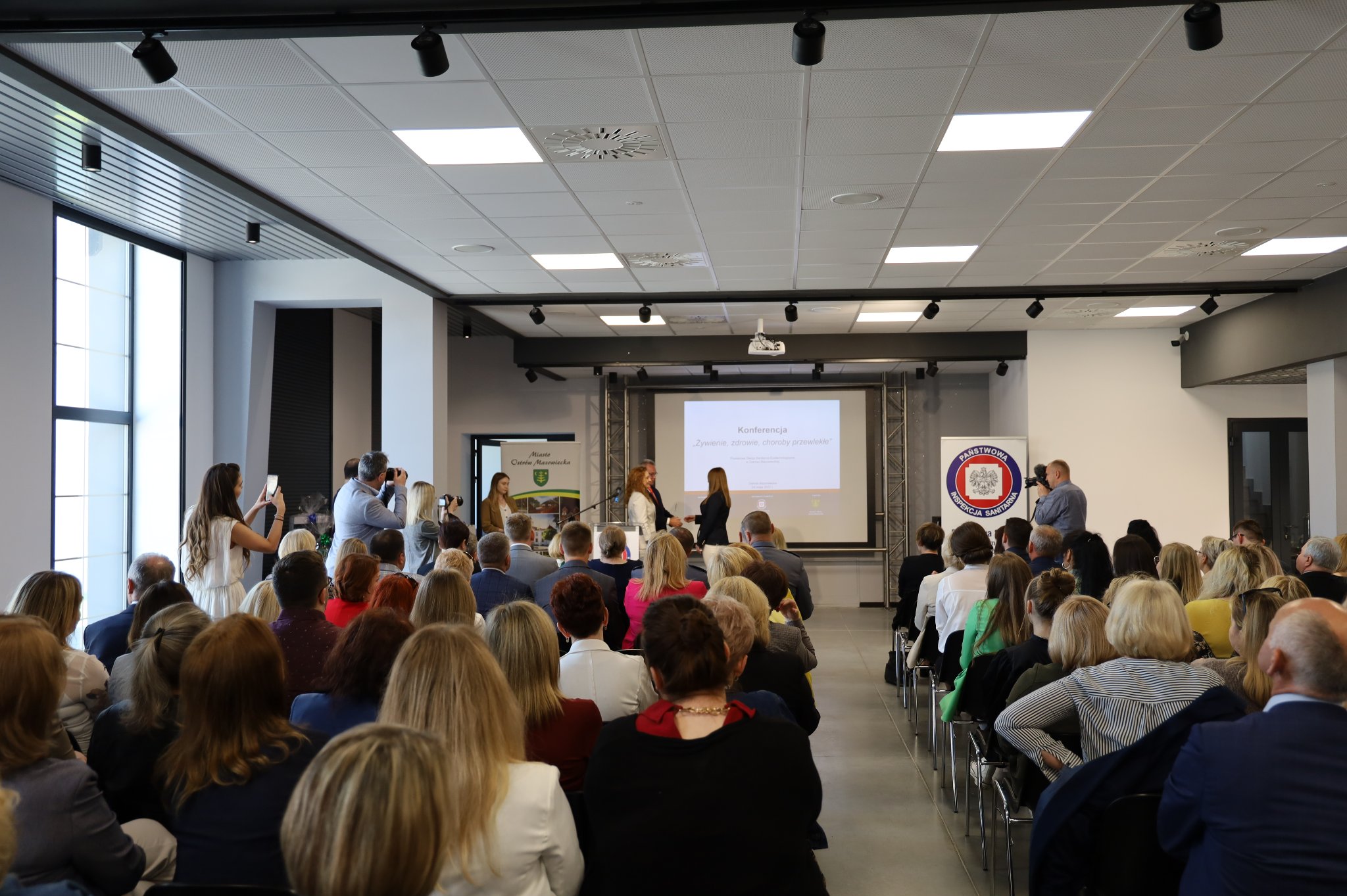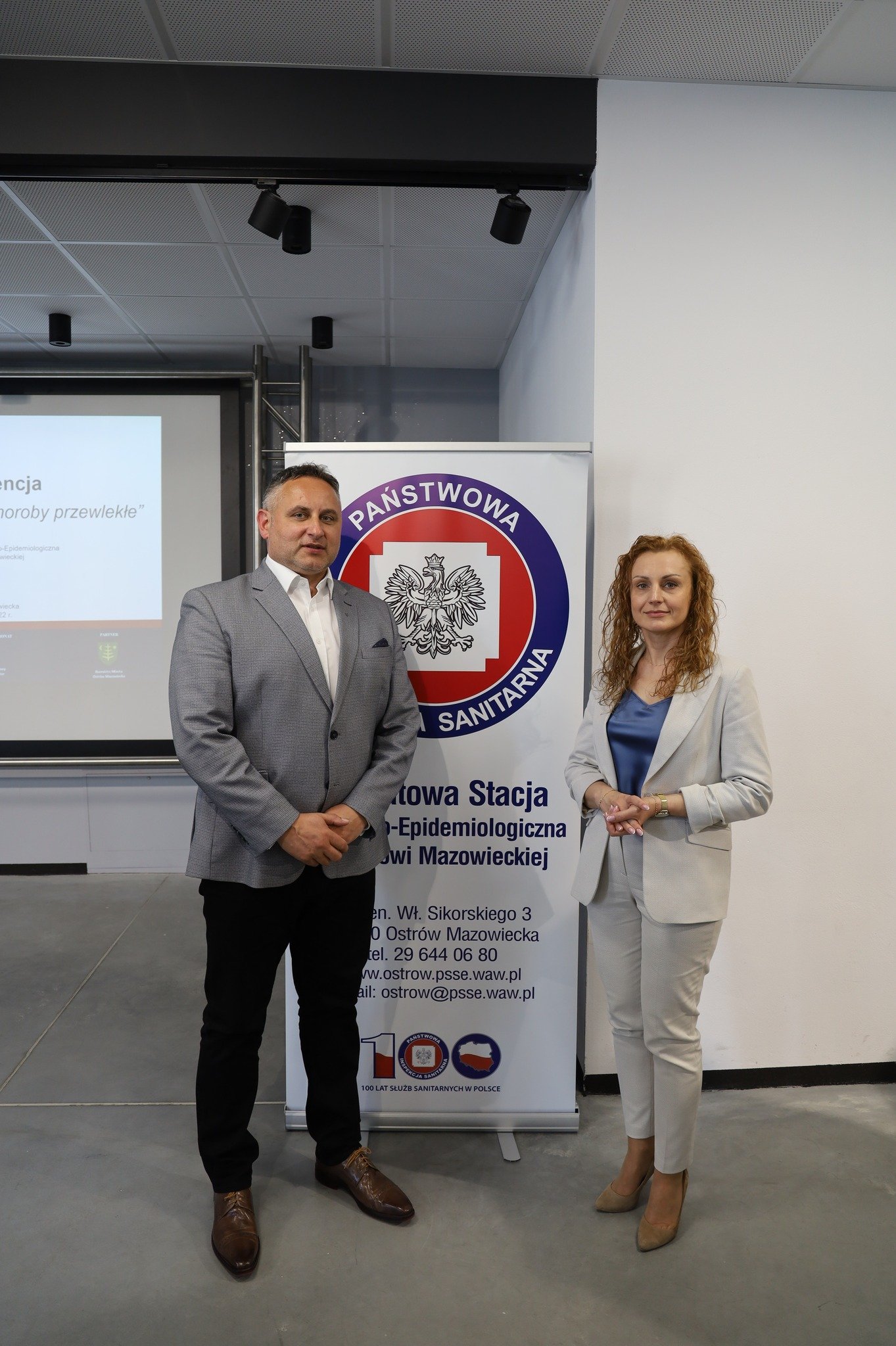Po zakończeniu konferencji zaproszeni goście udali się do siedziby Powiatowej Stacji Sanitarno – Epidemiologicznej w Ostrowi Mazowieckiej. Państwowy Powiatowy Inspektor Sanitarny w Ostrowi Mazowieckiej Pani Magdalena Kaczmarek wraz z Panem Tomaszem Sławatyńcem - Dyrektorem Wydziału Zdrowia Mazowieckiego Urzędu Wojewódzkiego w Warszawie oraz Burmistrzem Miasta Panem Jerzym Bauerem dokonali uroczystego otwarcia sali konferencyjnej. Nowoczesna sala będzie służyć nie tylko pracownikom Stacji, ale również będzie miejscem organizacji wielu wydarzeń o charakterze prozdrowotnym.