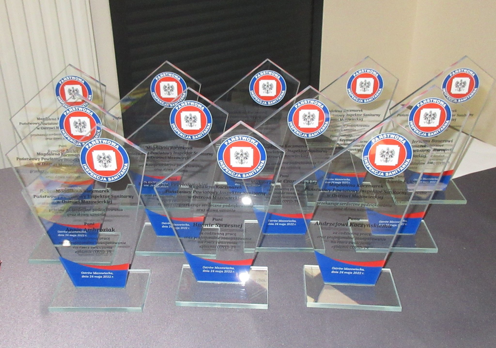 Podczas otwarcia konferencji Pani Inspektor wręczyła pamiątkowe statuetki pracownikom Stacji, Komendantowi Powiatowemu Policji w Ostrowi Mazowieckiej podinsp. Krzysztofowi Szymańskiemu, Komendantowi Miejskiej Policji w Ostrołęce mł. insp. Mirosławowi Olszewskiemu oraz Burmistrzowi Miasta Ostrów Mazowiecka Panu Jerzemu Bauerowi. Nagrodzonym osobom oraz wszystkim pracownikom Stacji podziękowała za profesjonalną i pełną oddania pracę w czasie pandemii COVID-19 ”… dziękuję moim współpracownikom, a tym samym niezwykłym ludziom, dla których praca dla Państwa była i jest ogromnym źródłem prawdziwej satysfakcji, a dbanie o zdrowie drugiego człowieka najważniejszą jej misją”.