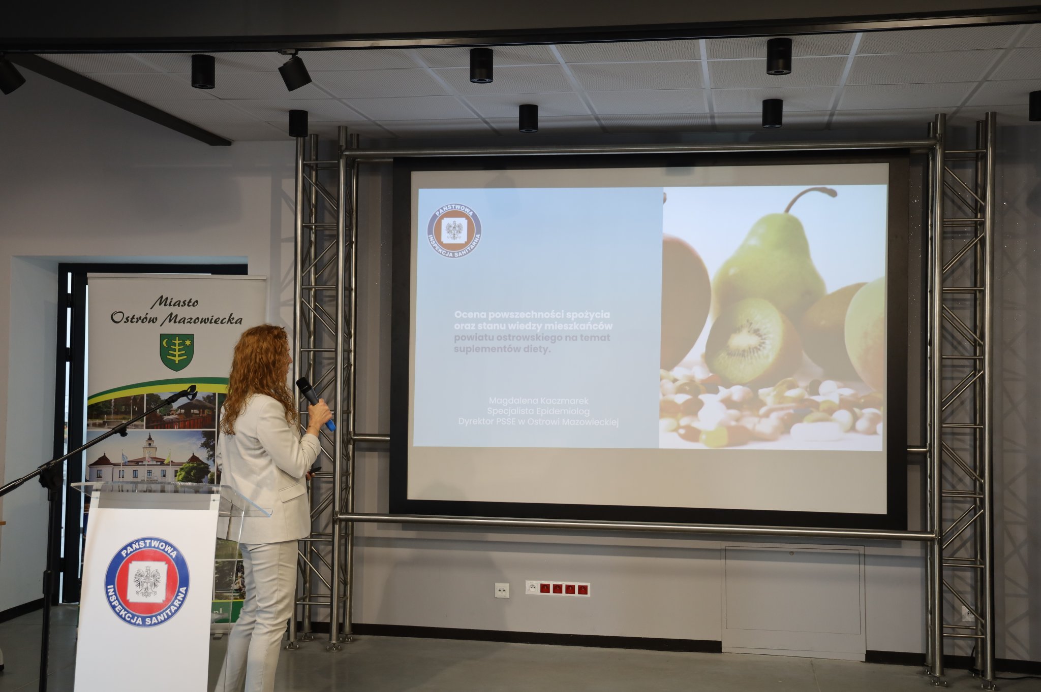 W drugiej części konferencji Państwowy Powiatowy Inspektor Sanitarny w Ostrowi Mazowieckiej Pani Magdalena Kaczmarek – Specjalista Epidemiolog przedstawiła i omówiła wyniki badania ankietowego przeprowadzonego przez PSSE w Ostrowi Mazowieckiej dot. oceny powszechności spożycia oraz stanu wiedzy mieszkańców powiatu ostrowskiego nt. suplementów diety.
