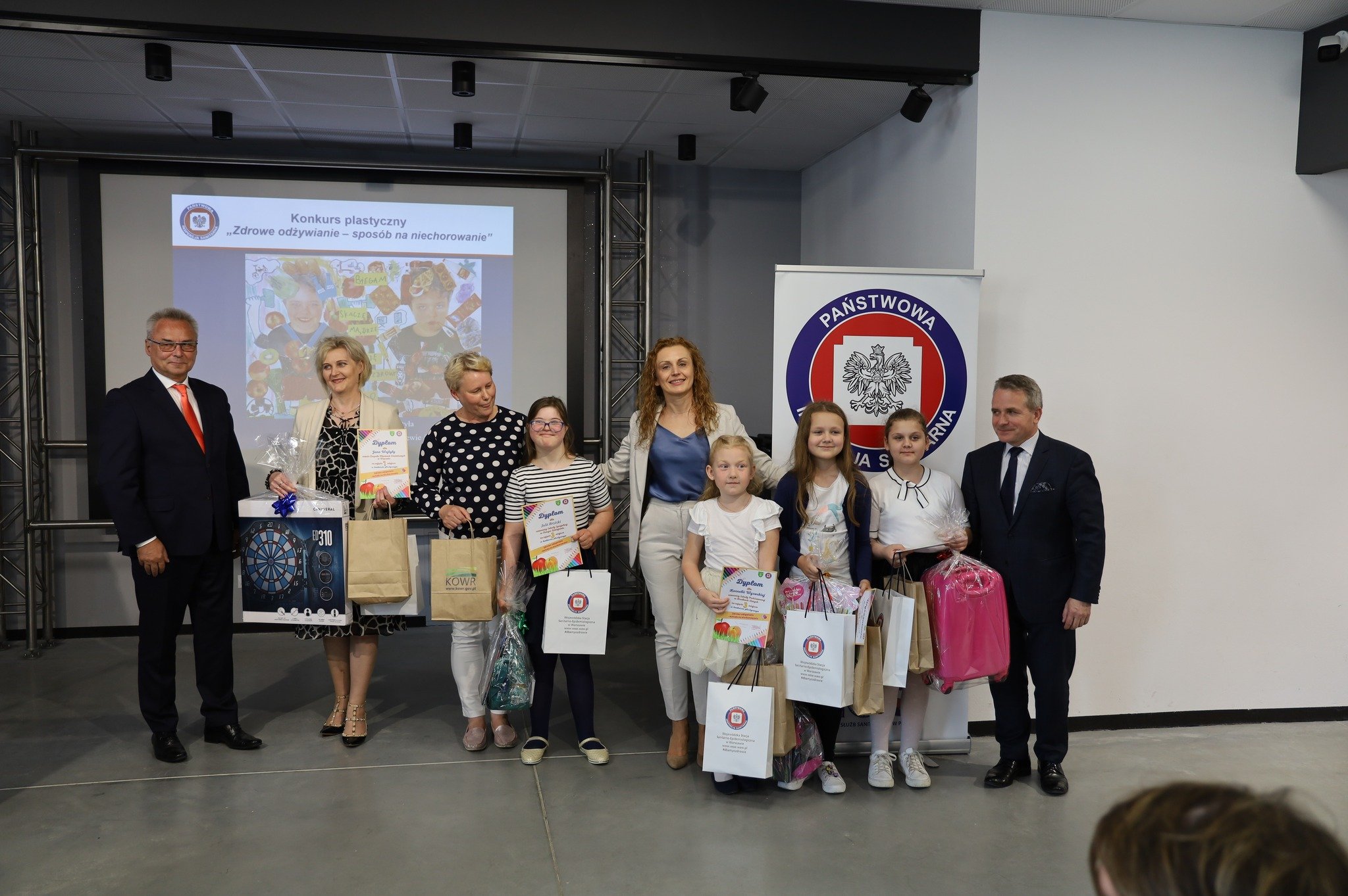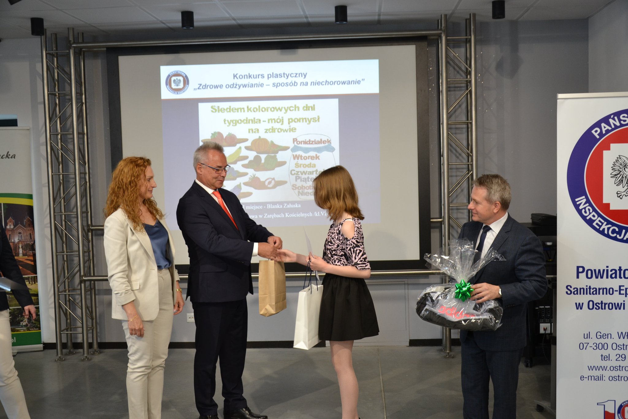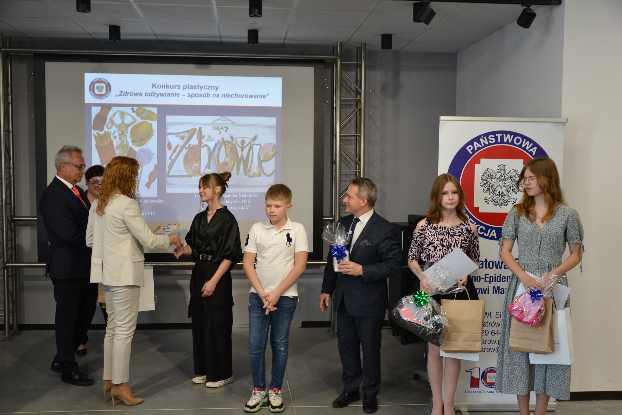 Na zakończenie konferencji Pani Anna Ambroziak - Kierownik Oddziału Nadzoru Powiatowej Stacji Sanitarno - Epidemiologicznej w Ostrowi Mazowieckiej podsumowała wyniki konkursu plastycznego dla uczniów szkół podstawowych pt.„ Zdrowe odżywianie - metoda na niechorowanie”, którego organizatorem była PSSE w Ostrowi Mazowieckiej. Konkurs skierowany był do wszystkich uczniów szkół podstawowych z powiatu ostrowskiego. Do konkursu zgłoszono 213 prac plastycznych, z których komisja konkursowa wyłoniła laureatów miejsc I-III oraz przyznała dwa wyróżnienia. Sponsorem nagród dla zwycięzców konkursu był Burmistrz Miasta Ostrów Mazowiecka. Laureaci konkursu otrzymali również upominki ufundowane przez Wojewódzką Stację Sanitarno- Epidemiologiczną w Warszawie oraz Ministerstwo Rolnictwa i Rozwoju Wsi. Konferencji towarzyszyła wystawa prac plastycznych uczniów.
