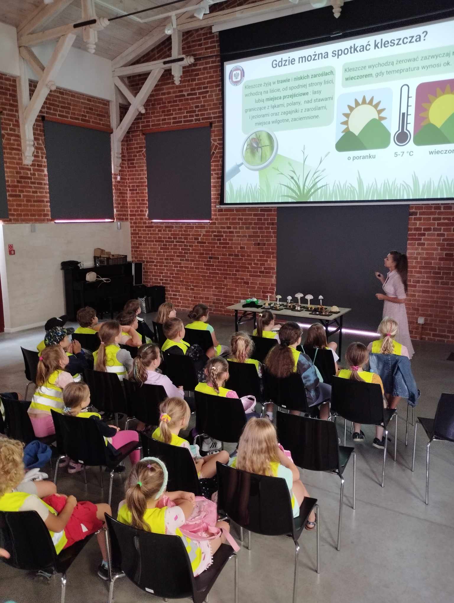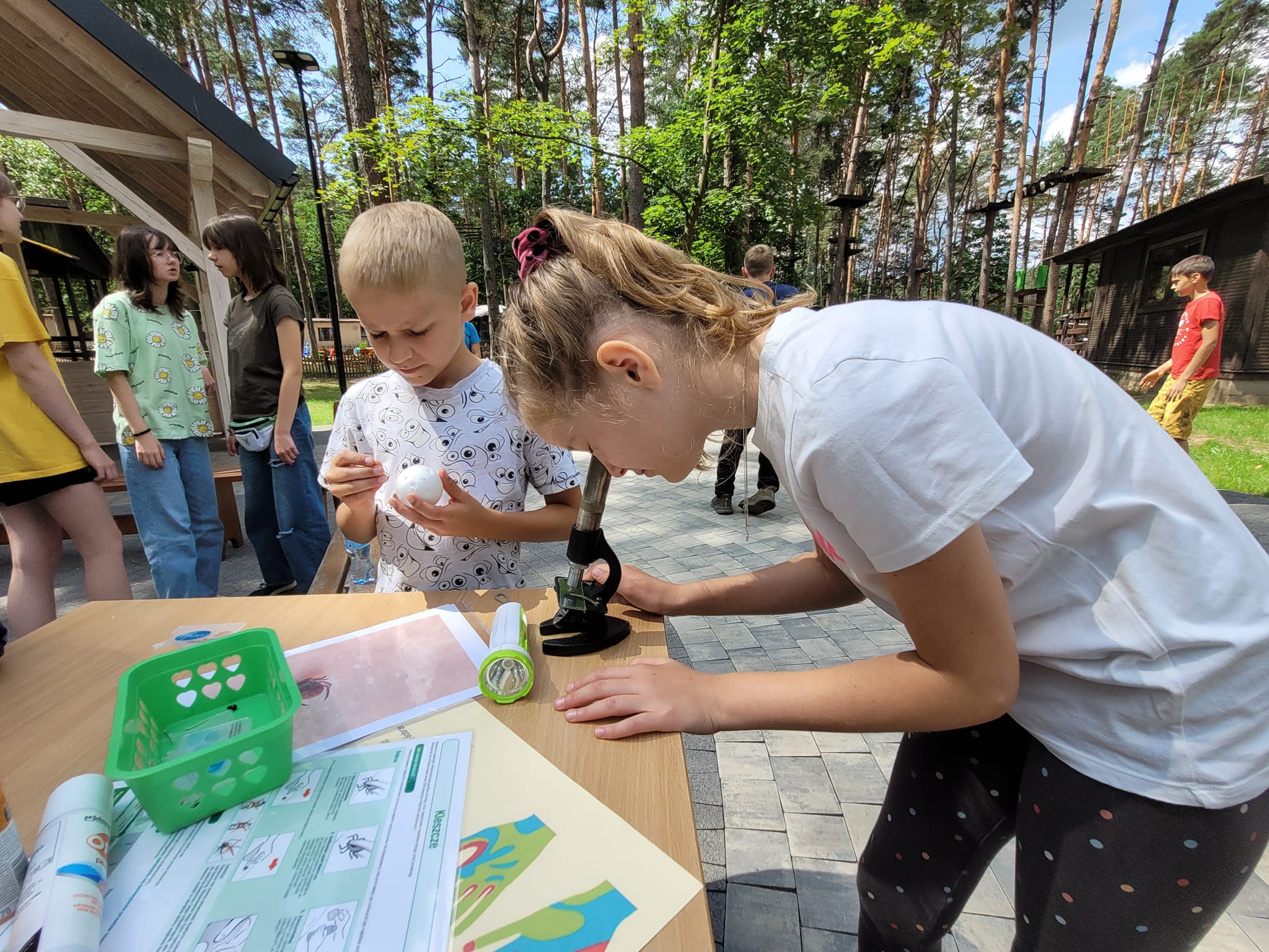 Pogadanki wzbogacono materiałami informacyjnymi, prezentacją multimedialną i filmikami edukacyjnymi. Podczas zajęć dzieci zapoznały się z budową kleszcza (pod mikroskopem), a także z prawidłowym sposobem jego usuwania.
