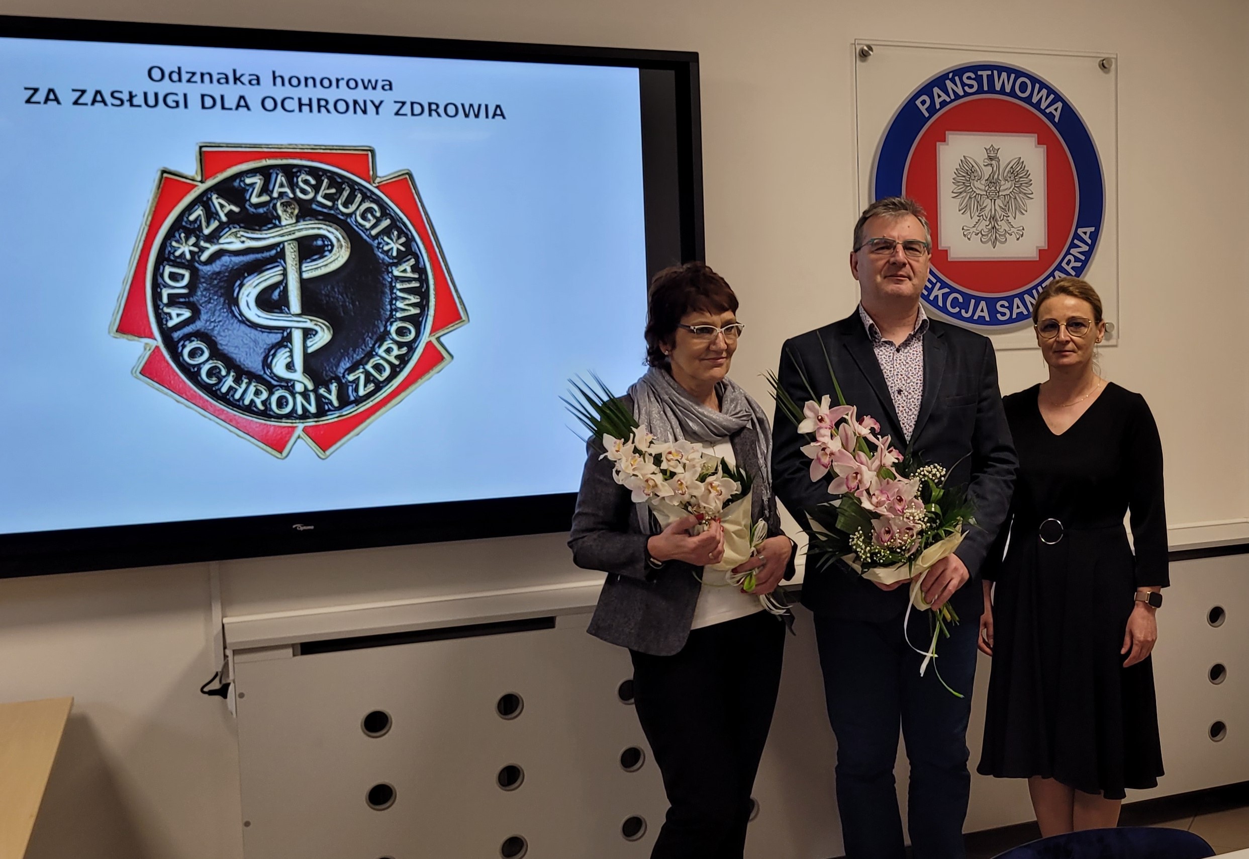Wśród odznaczonych wyróżniono również pracowników Powiatowej Stacji Sanitarno - Epidemiologicznej w Ostrowi Mazowieckiej, tj. Pana Andrzeja Kaczyńskiego - Kierownika Sekcji Higieny Komunalnej oraz Panią Bożenę Podbielską - Starszego asystenta w Sekcji Epidemiologii.