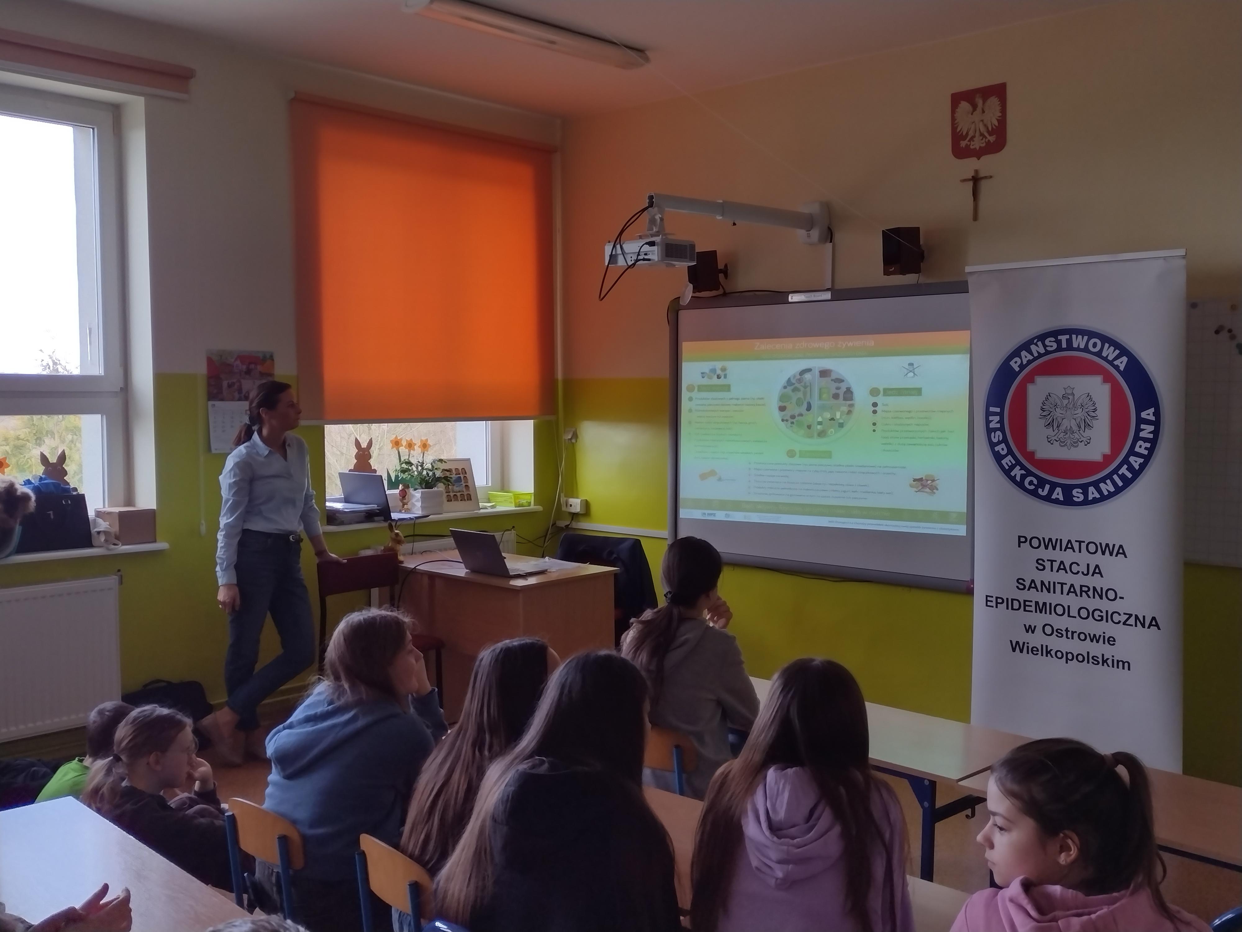 Z okazji Światowego Dnia Zdrowia, który w roku 2024 przebiegał pod hasłem „Moje zdrowie, moje prawo” pracownicy Oświaty Zdrowotnej i Promocji Zdrowia PSSE w Ostrowie Wielkopolskim zorganizowali 5 kwietnia 2024 r. w Zespole Szkolno-Przedszkolnym w Łąkocinach akcję informacyjno – edukacyjną dla uczniów szkoły.