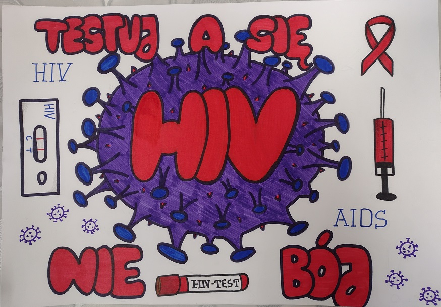 Zadanie konkursowe polegało na przygotowaniu przez uczniów plakatu zachęcającego do wykonania testu na HIV po każdej sytuacji ryzykownej pod hasłem „Nie daj szansy AIDS" dla uczniów szkół ponadpodstawowych.