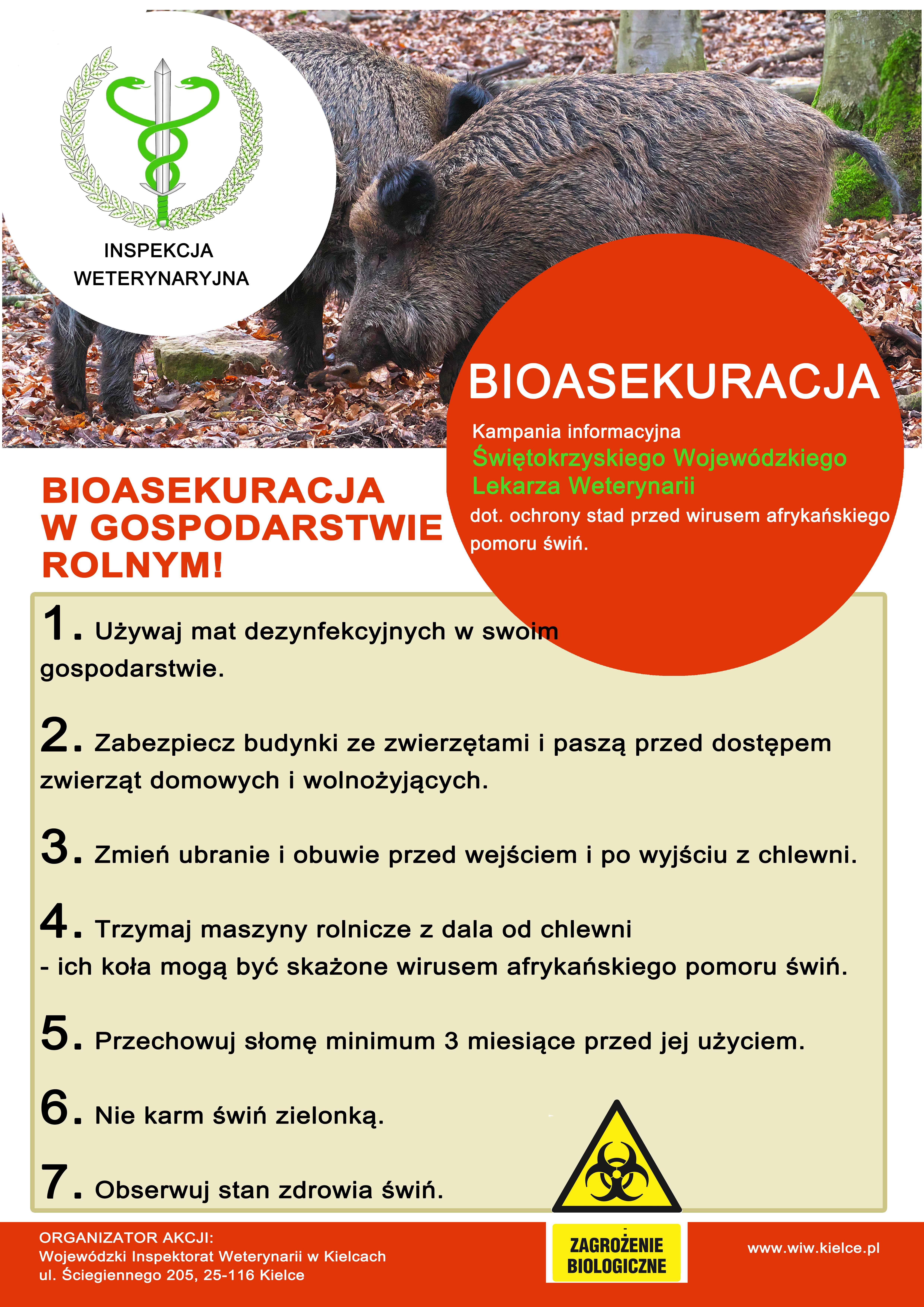 Państwowy Powiatowy Inspektor Sanitarny w Ostrowcu Świętokrzyskim w ramach współpracy z Powiatowym Lekarzem Weterynarii w Ostrowcu Świętokrzyskim w zakresie zwalczania Afrykańskiego pomoru świń (African swine fever - ASF) prowadzi wzmożone kontrole dotyczące: