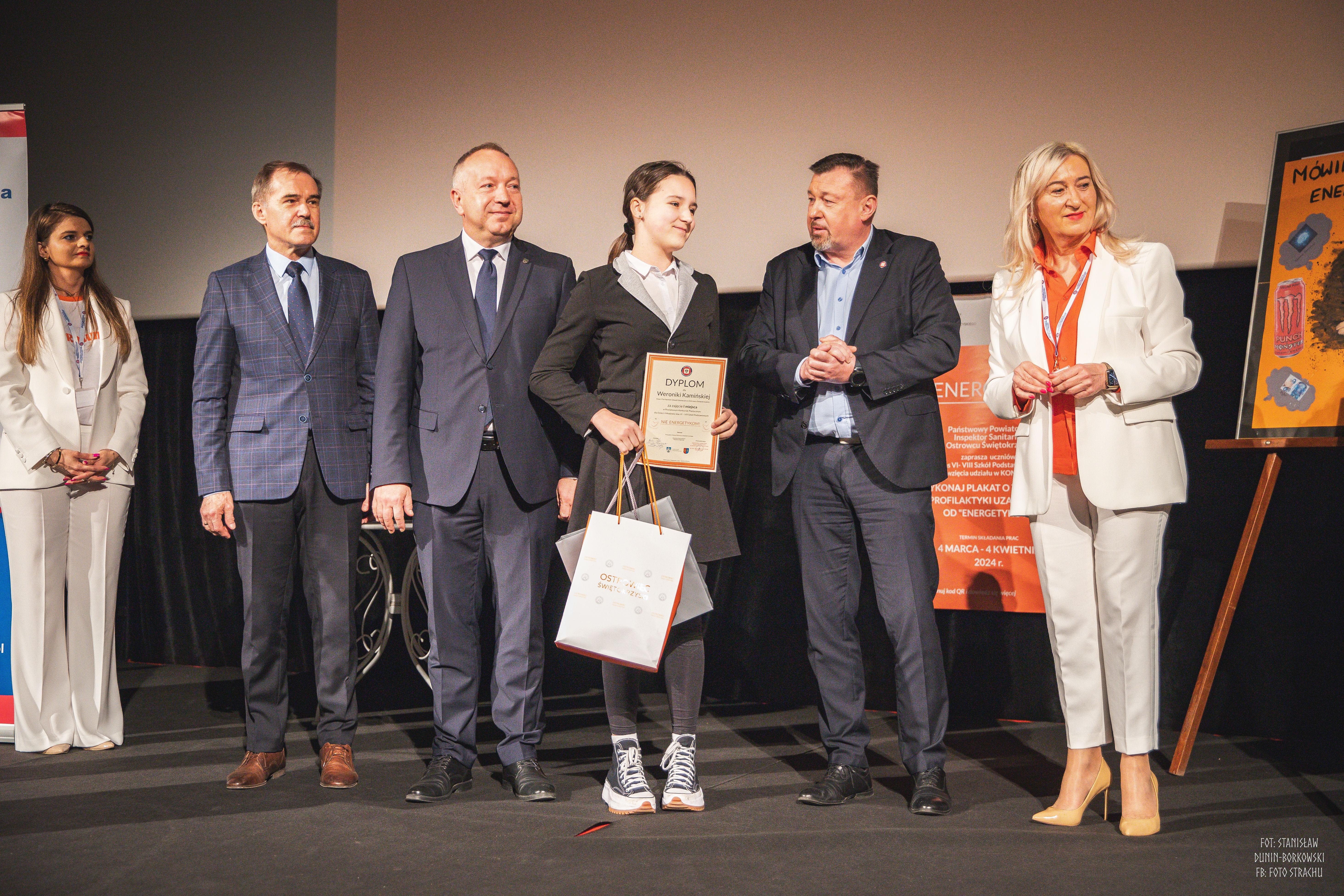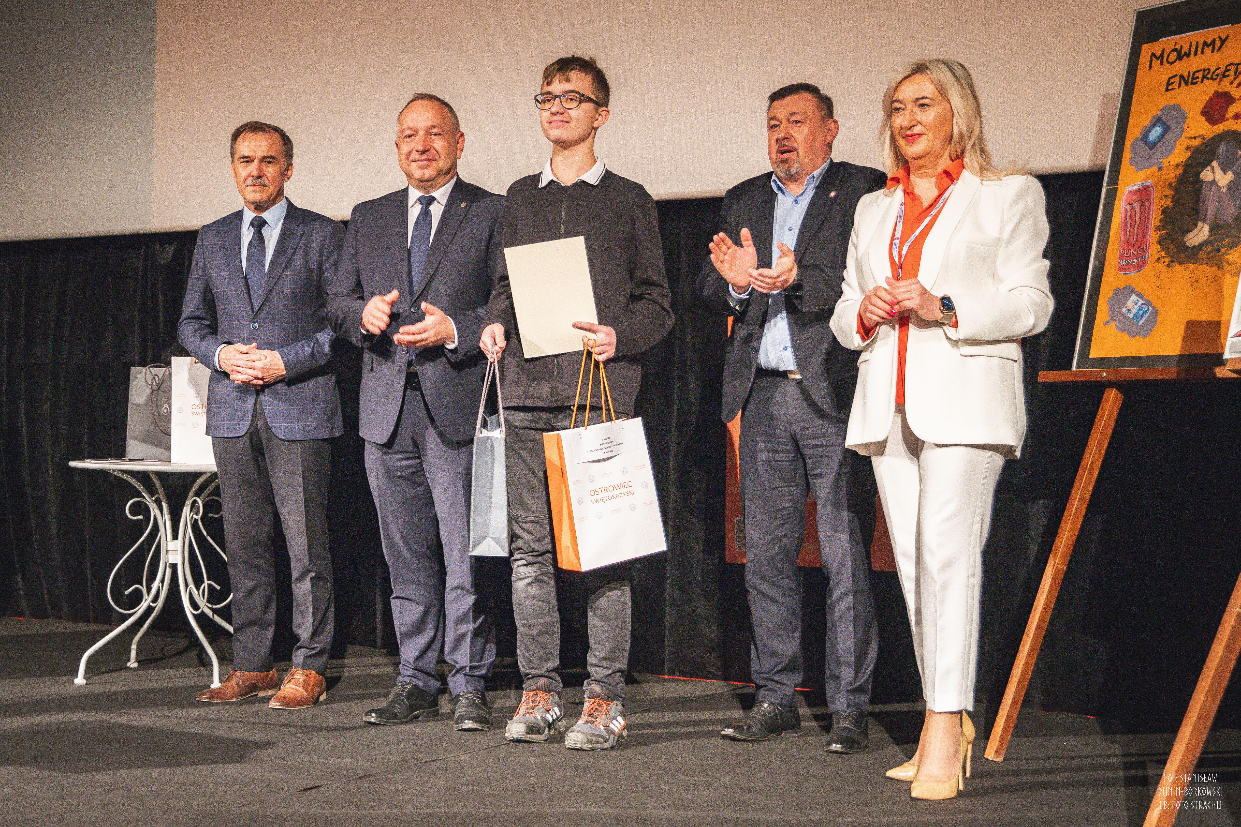 Uroczyste ogłoszenie wyników oraz wręczenie nagród odbyło się 16.04.2024 r. w trakcie Konferencji „Współczesne zagrożenia dzieci i młodzieży”. Nagrody wręczyli Świętokrzyski Państwowy Wojewódzki Inspektor Sanitarny Pan Jarosław Ciura, Wicestarosta Ostrowiecki Pan Andrzej Jabłoński, Prezydent Miasta Ostrowca Świętokrzyskiego Pan Artur Łakomiec oraz Przewodniczący komisji konkursowej Państwowy Powiatowy Inspektor Sanitarny w Ostrowcu Św. Pani Wioletta Adamczyk – Nowak