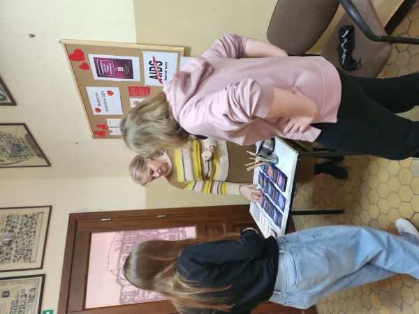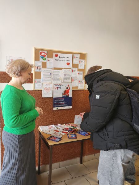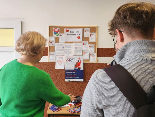 W ramach akcji ❤️Bezpieczne Walentynki❤️ przeprowadzono spotkania z młodzieżą w szkołach ponadpodstawowych. W placówkach przygotowano punkty informacyjne- edukacyjne przy których pracownik ds. oświaty zdrowotnej i promocji zdrowia udzielał poradnictwa z zakresu profilaktyki HIV/AIDS oraz promował bezpieczne i odpowiedzialne zachowania w aspekcie chorób przenoszonych drogą płciową. Zachęcał do wykonania testów w kierunku HIV, szybkich testów w kierunku kiły i HCV, które można wykonać anonimowo, bezpłatnie i bez skierowania. Młodzież mogła także przymierzyć alkogogle, by zobaczyć efekt jaki wywołuje spożycie alkoholu czy przyjmowanie innych używek ograniczających możliwość kontrolowania własnych zachowań. Otrzymała ulotki i gadżety.