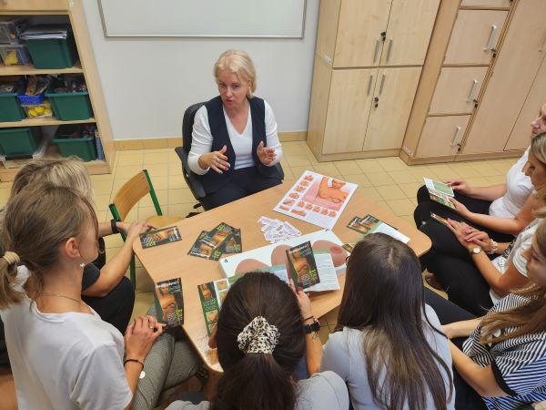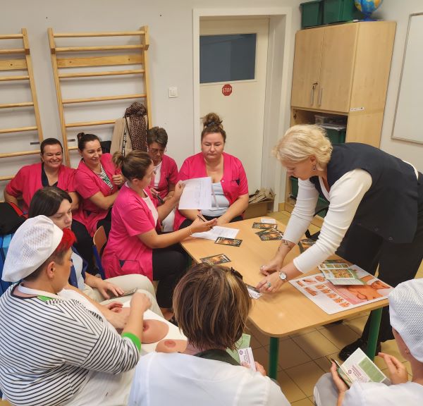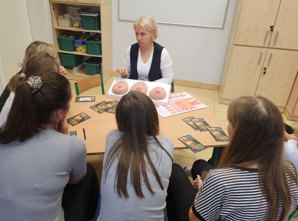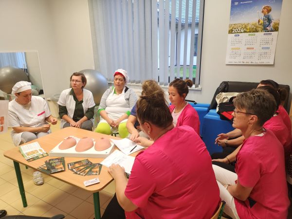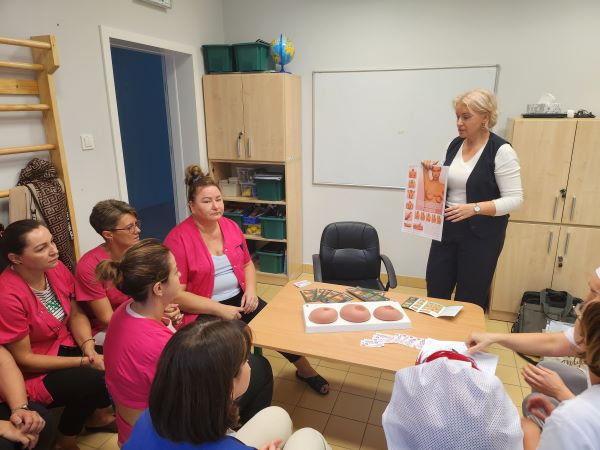 W ramach projektu edukacyjnego pt.: „Co kryją Twoje piersi?” odbyły się kolejne dwa szkolenia. Przeprowadzono je wśród pracowników dwóch przedszkoli. Na spotkaniach omówiono czynniki ryzyka, objawy i profilaktykę raka piersi oraz epidemiologię występowania nowotworów w Polsce. Uczestnicy obejrzeli prezentację oraz film. Następnie odbyły się pokazy nauki samobadania piersi z wykorzystaniem fantomu, a na zakończenie wręczono uczestnikom spotkań materiały edukacyjne – ulotkę oraz kalendarzyk samobadania piersi.