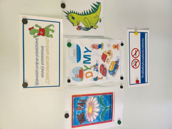 W ramach programu profilaktyki antynikotynowej przeprowadzono wśród dzieci 6-letnich w Zespole Szkolno – Przedszkolnym z oddziałami integracyjnymi w Rojowie pogadankę. W trakcie zajęć rozmawialiśmy o różnych źródłach dymu w oparciu o przygotowane ilustracje, określiliśmy rodzaje dymów oraz przyczynę wydobywania się dymów. Podkreśliliśmy jak szkodliwe jest działanie dymu nikotynowego szczególnie na młody organizm. Zachęcano dzieci do asertywności gdy narażone są na wdychanie dymu z papierosa. Podczas spotkania dzieci rozwiązywały różne zadania i rebusy związane z profilaktyką antynikotynową. Były bardzo zaangażowane i chętnie dzieliły się swoimi spostrzeżeniami. Na koniec spotkania podsumowano konkurs plastyczny pod hasłem „Dymy, które szkodzą” w którym dzieci wzięły udział. Uczestnicy konkursu otrzymali nagrody ufundowane przez PSSE w Ostrzeszowie, a za udział w spotkaniu odblaski Dinusie.