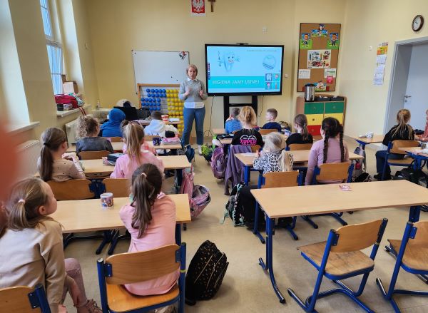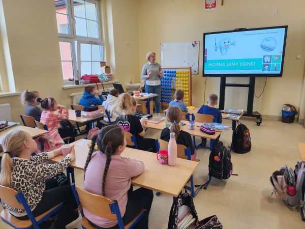 Celem projektu jest budowanie właściwych nawyków i popularyzacja zasad poprawnej higieny jamy ustnej wśród dzieci w wieku wczesnoszkolnym, poprzez: - zwiększenie świadomości dzieci dotyczącej konieczności codziennej, systematycznej dbałości o zdrowie jamy ustnej i zębów; - utrwalenie wiedzy na temat podstawowych zasad profilaktyki próchnicy; - kształtowanie prawidłowych nawyków i umiejętności wśród dzieci dotyczących właściwej higieny jamy ustnej. W ramach projektu pracownik ds. oświaty zdrowotnej i promocji zdrowia przeprowadził w Szkole Podstawowej w Doruchowie, w dwóch klasach pierwszych pogadanki. Przedstawił dzieciom prezentację multimedialną o powyższej tematyce oraz wręczył materiały edukacyjne – ulotki, kalendarze mycia ząbków i magnesy z logo projektu. Wykorzystując model szczęki udzielił uczniom instruktażu prawidłowego mycia zębów, przekazał wskazówki jak dbać o higienę jamy ustnej, omówił funkcje j choroby ząbków oraz zachęcał do regularnych wizyt u dentysty. Każda klasa otrzymała dyplom za udział w zajęciach.