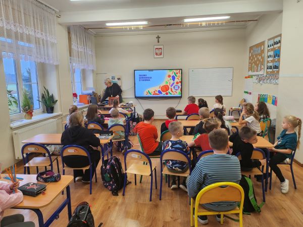 Na terenie powiatu ostrzeszowskiego w ramach Projektu przeprowadzono kolejne spotkanie. Zajęcia edukacyjne odbyły się w Szkole Podstawowej w Przytocznicy wśród uczniów klas I-III. Podczas spotkania, dzieci dowiedziały się jak powinien wyglądać talerz zdrowego żywienia. Jakie różnorodne produkty powinny się na nim znaleźć by zdrowo się odżywiać. Jak ważne jest spożywanie: