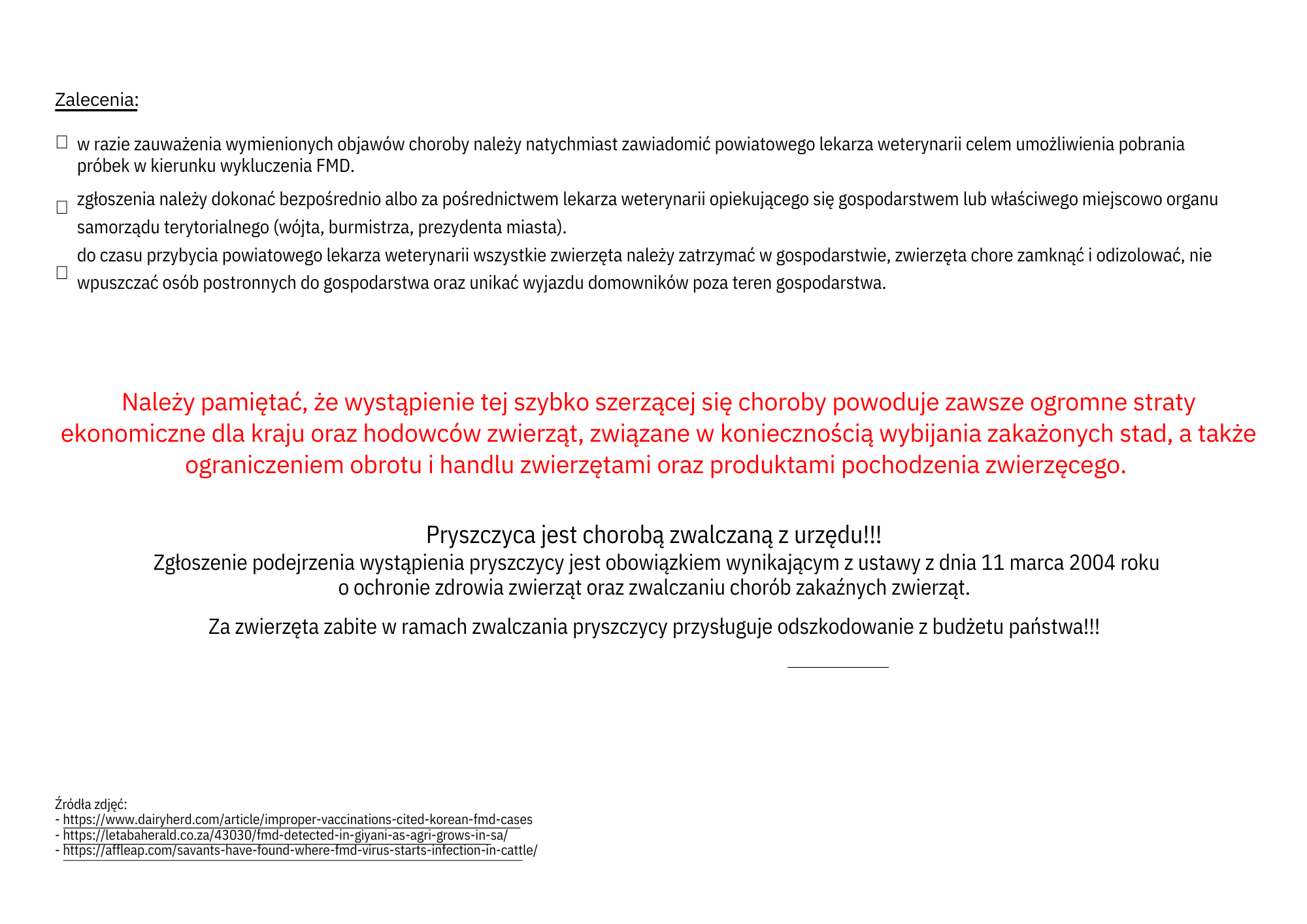 Prowadzi się również nadzór epidemiologiczny w środowisku osób narażonych na zakażenie wirusem pryszczycy. W przypadku wystąpienia objawów choroby należy zgłosić się do lekarza.