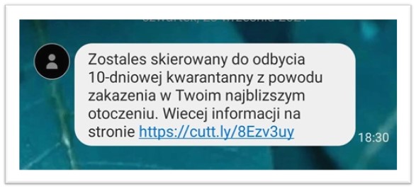 Mazowiecki Państwowy Wojewódzki Inspektor Sanitarny ostrzega: mieszkańcy Mazowsza i całej Polski otrzymują fałszywą wiadomość sms o nałożeniu kwarantanny.